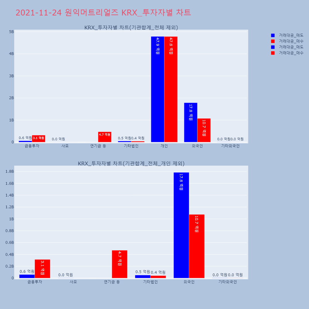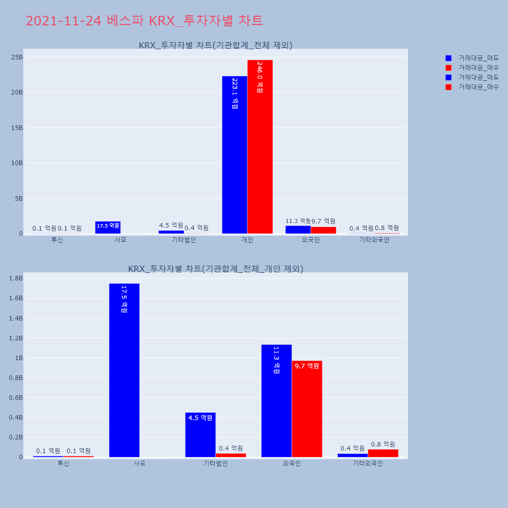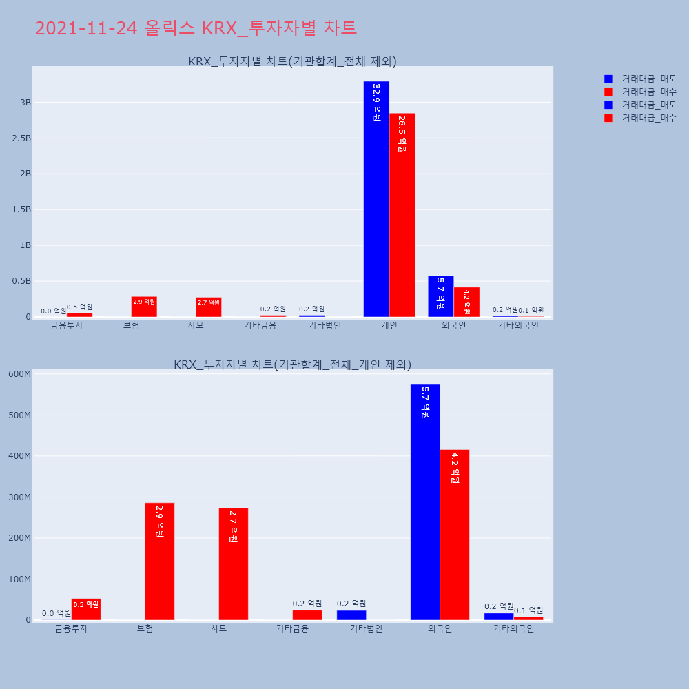| 투자기관 | 거래량_매도 | 거래량_매수 | 거래량_순매수 | 거래대금_매도 | 거래대금_매수 | 거래대금_순매수 |