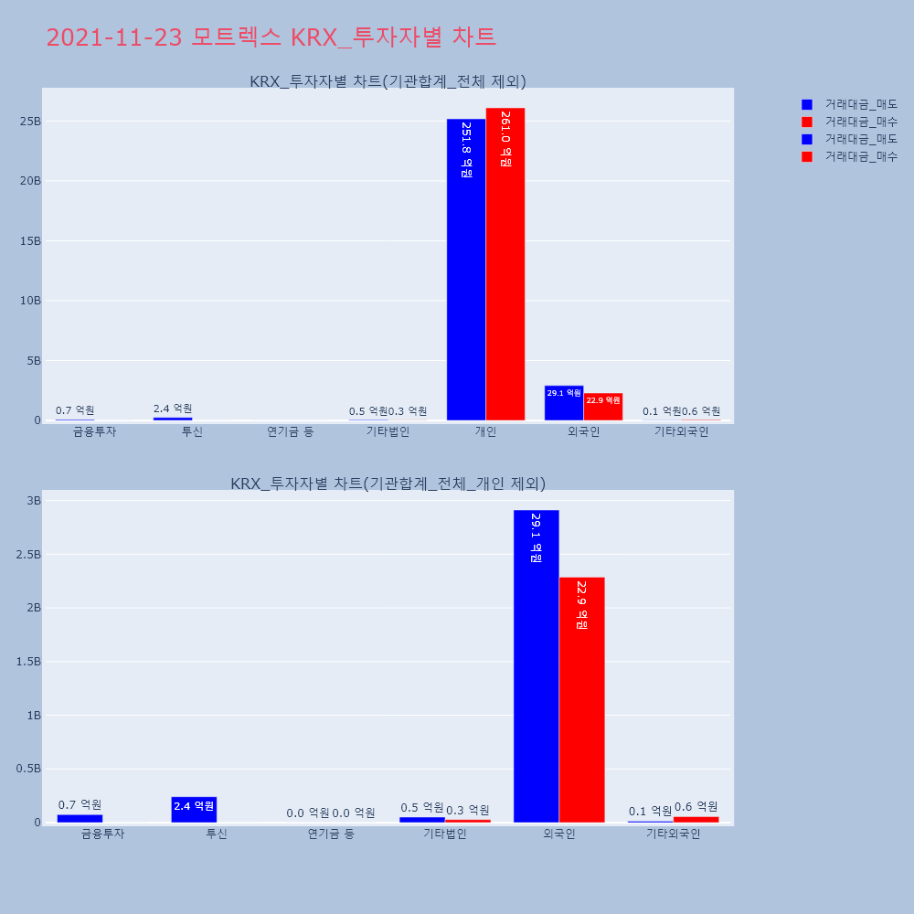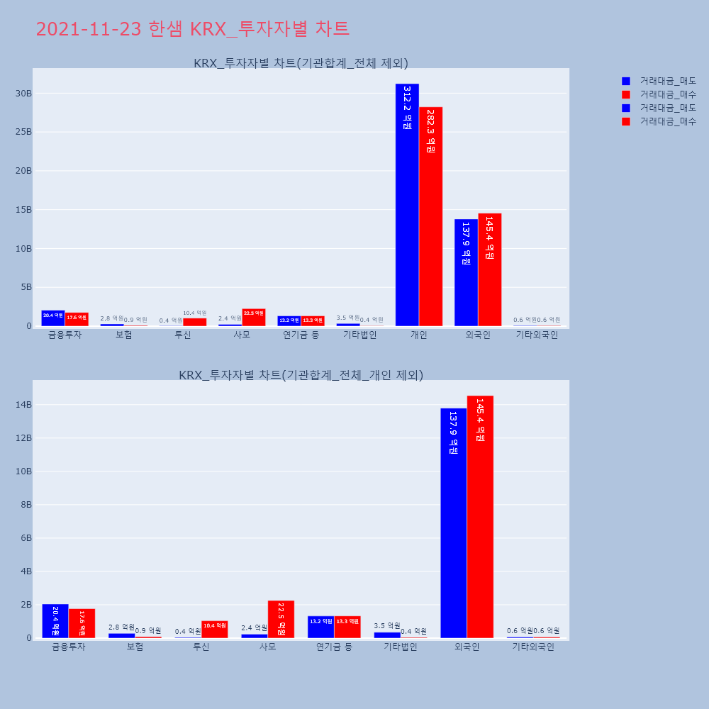 | 투자기관 | 거래량_매도 | 거래량_매수 | 거래량_순매수 | 거래대금_매도 | 거래대금_매수 | 거래대금_순매수 |