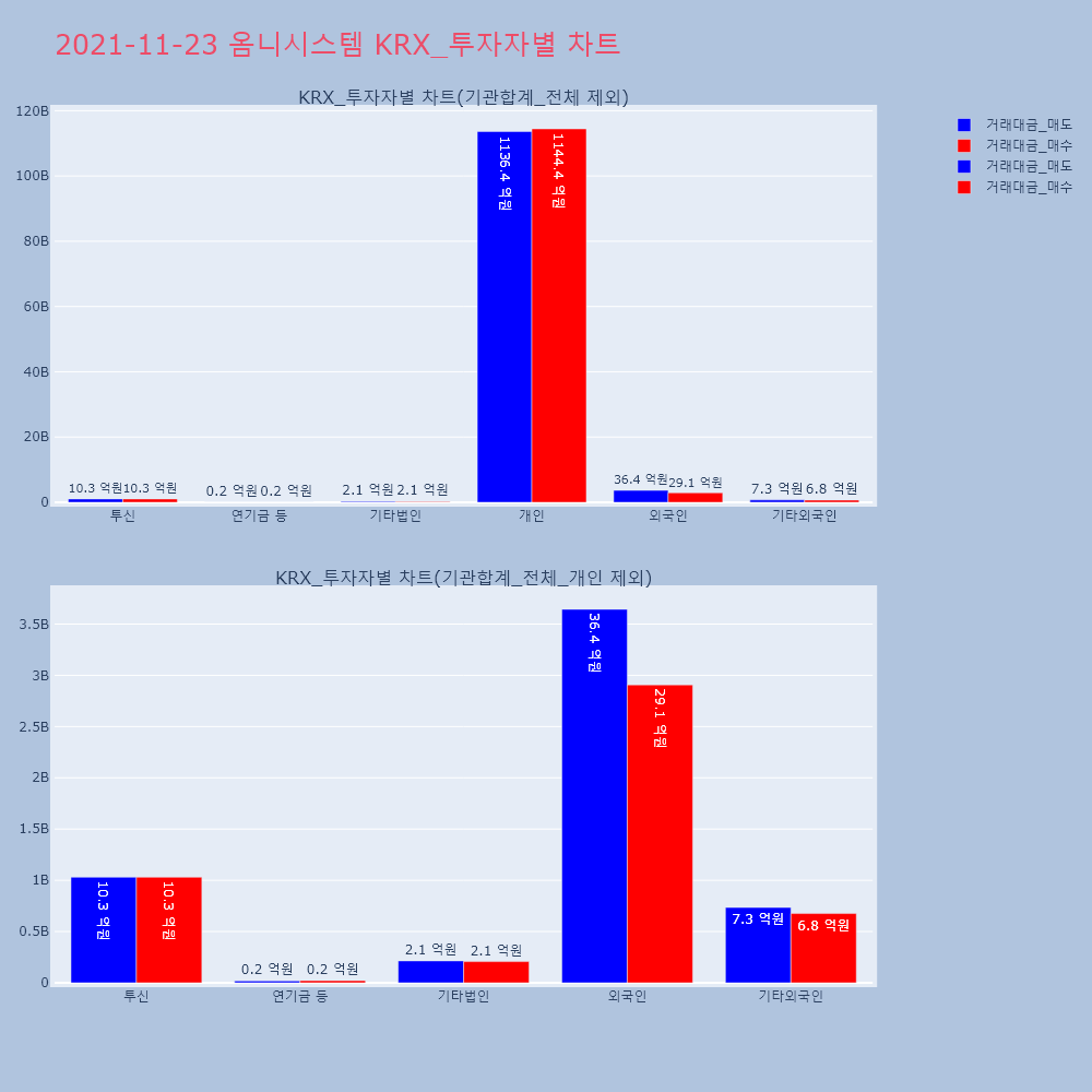 | 투자기관 | 거래량_매도 | 거래량_매수 | 거래량_순매수 | 거래대금_매도 | 거래대금_매수 | 거래대금_순매수 |