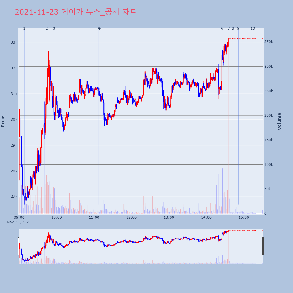 | 7 | [이시각 상한가] 케이카(▲7650) - 23일 오후 14시35분[이투데이/e2BOT 기자(e2bot@etoday.co | 이투데이 | 케이카 | 2021-11-23 14:36:03 |