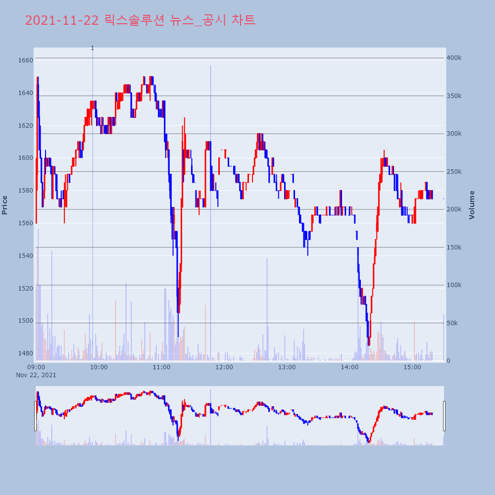 | 1 | '릭스솔루션' 52주 신고가 경신, 단기·중기 이평선 정배열로 상승세◆ 차트 분석- 단기·중기 이평선 정배열로 상승세 | 한경/증권 | 릭스솔루션 | 2021-11-22 09:54:07 |