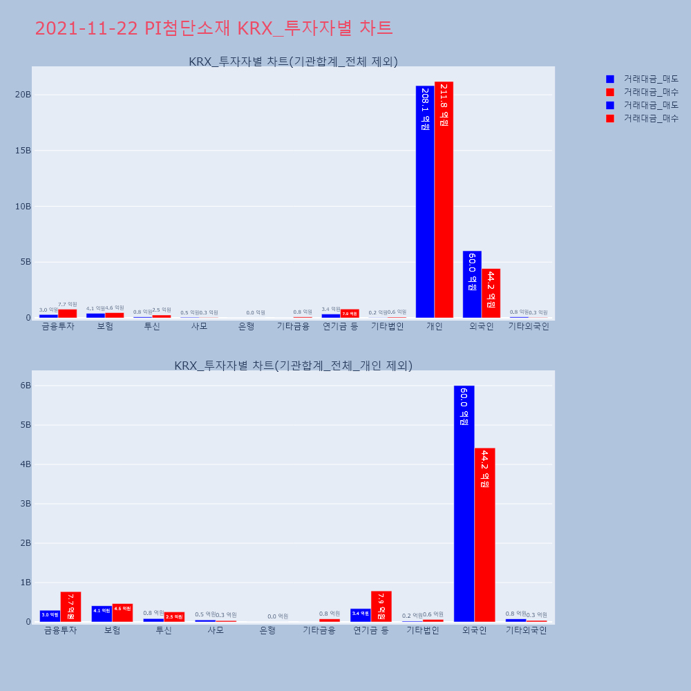 | 투자기관 | 거래량_매도 | 거래량_매수 | 거래량_순매수 | 거래대금_매도 | 거래대금_매수 | 거래대금_순매수 |