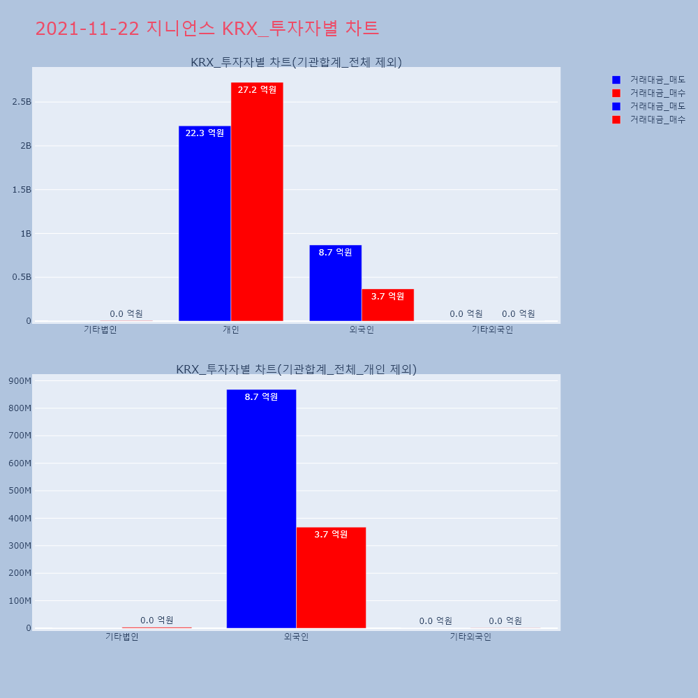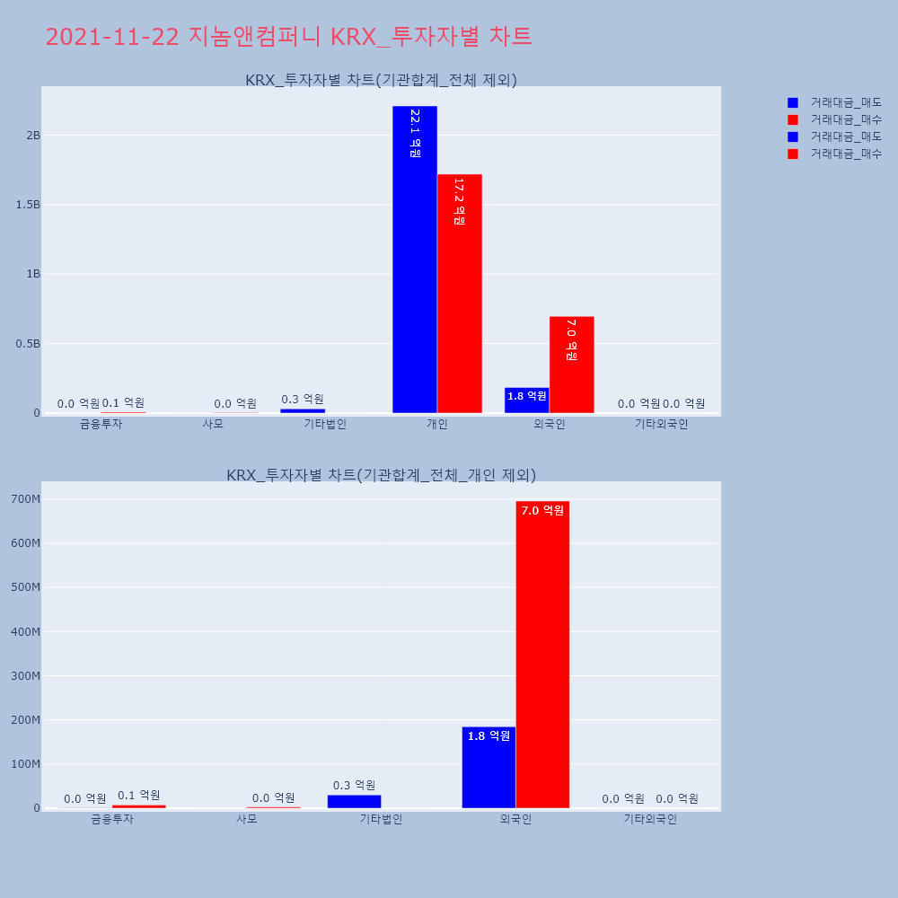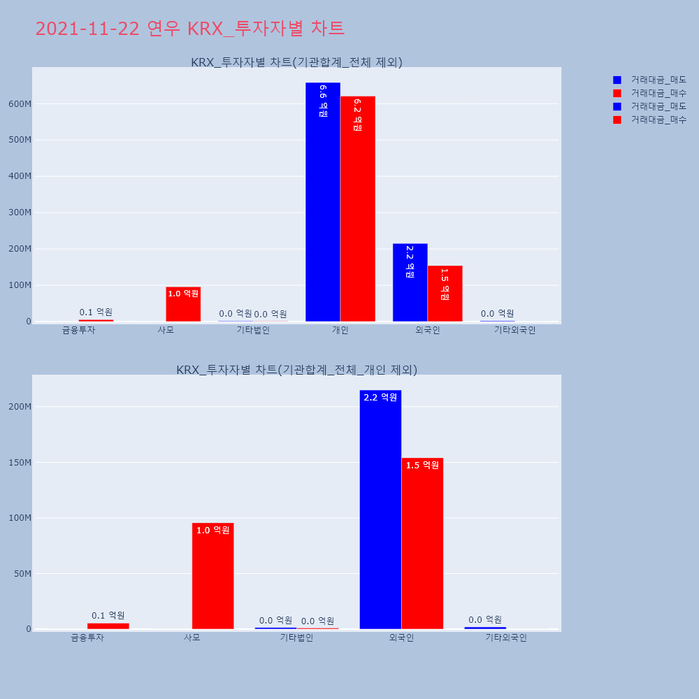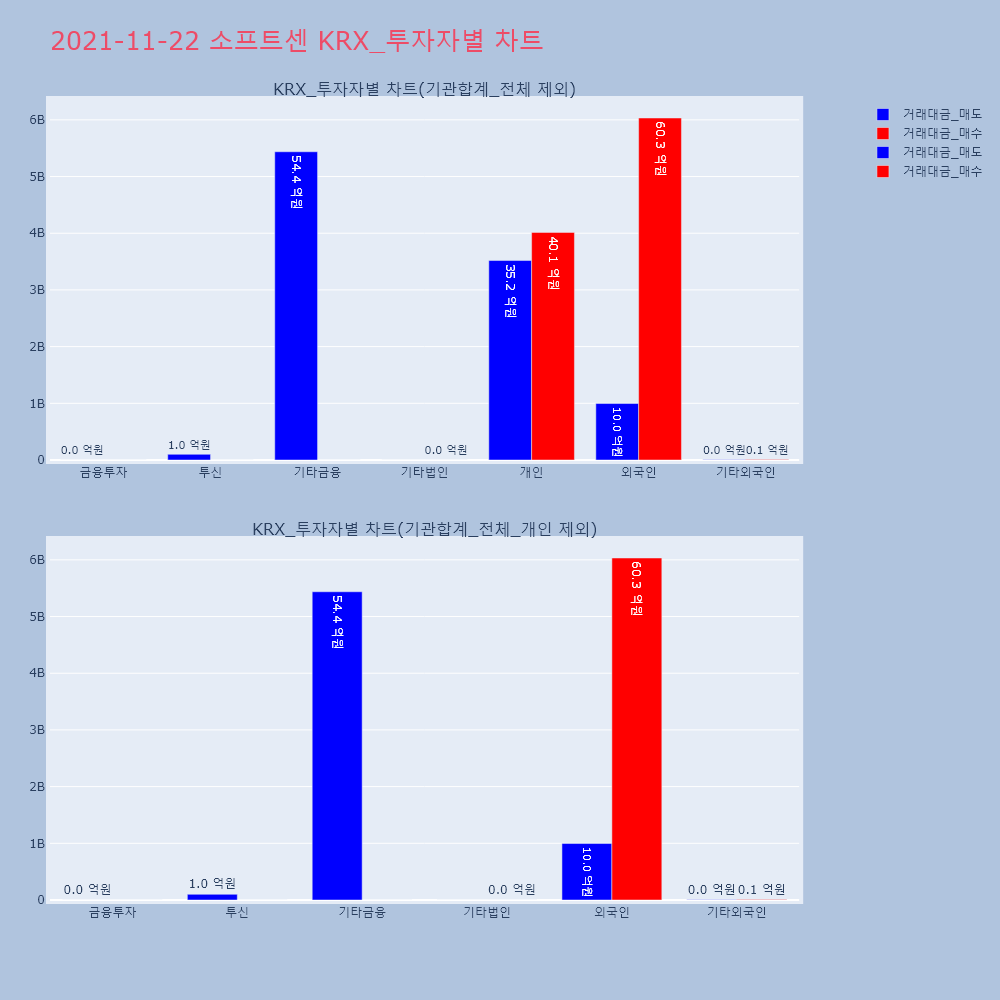 | 투자기관 | 거래량_매도 | 거래량_매수 | 거래량_순매수 | 거래대금_매도 | 거래대금_매수 | 거래대금_순매수 |