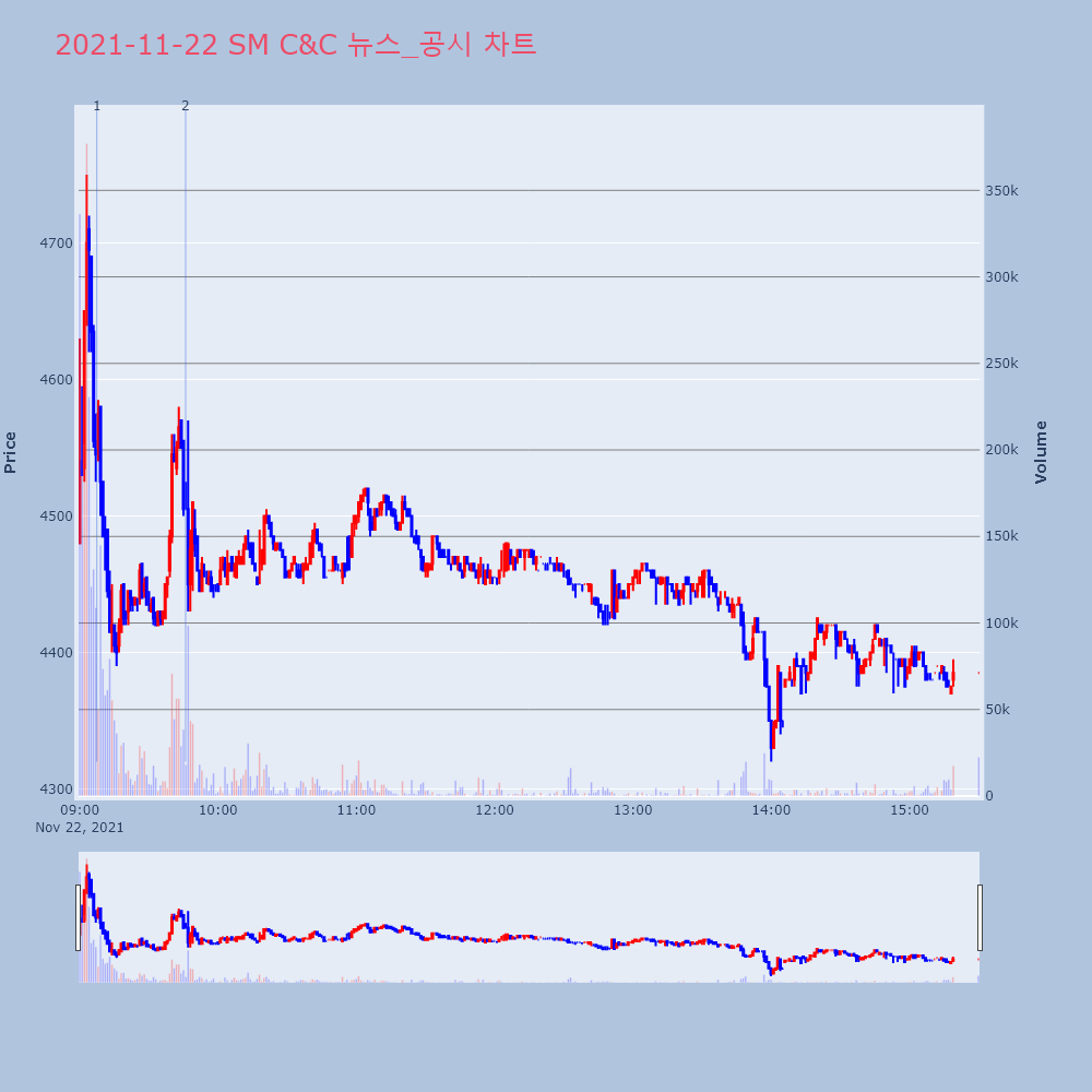 | 2 | [특징주] SM C&C, CJ그룹 10조 M&A 투자…인수 임박에 강세 [헤럴드경제=이호 기자] CJ ENM이 SM엔터테인먼트 | 헤럴드경제 | SM C&C | 2021-11-22 09:45:55 |