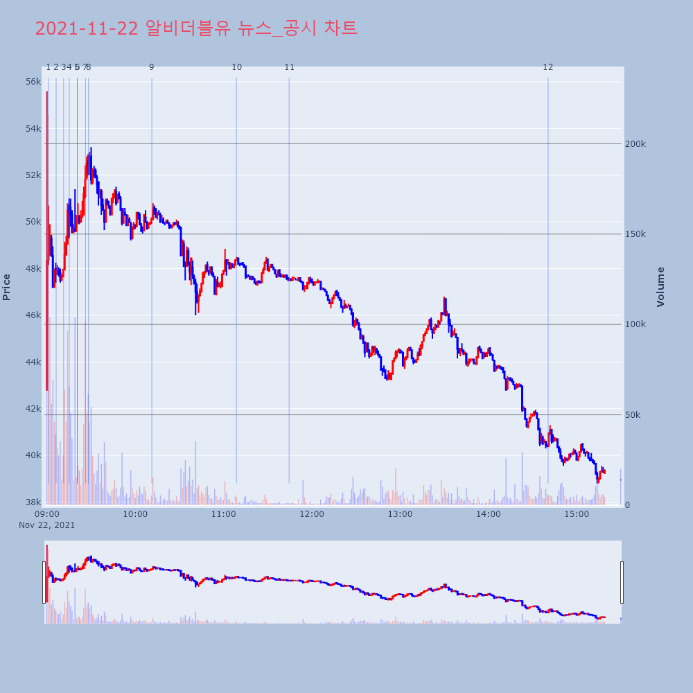 | 13 | 알비더블유 상장 마무리…"엔터株에 콘텐츠 더해 긍정적 전망"- 시초가 대비 9% 내린 3만8950원, 공모가 대비 | 이데일리 | 알비더블유 | 2021-11-22 15:49:46 |