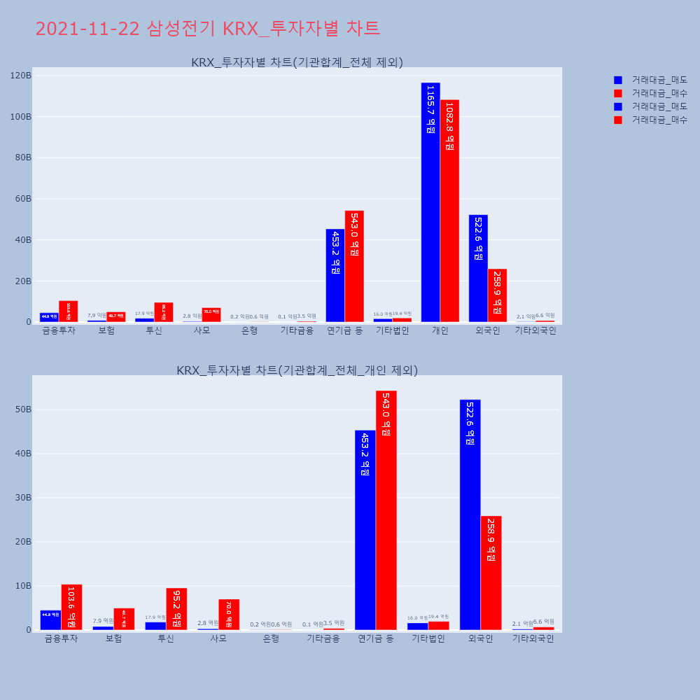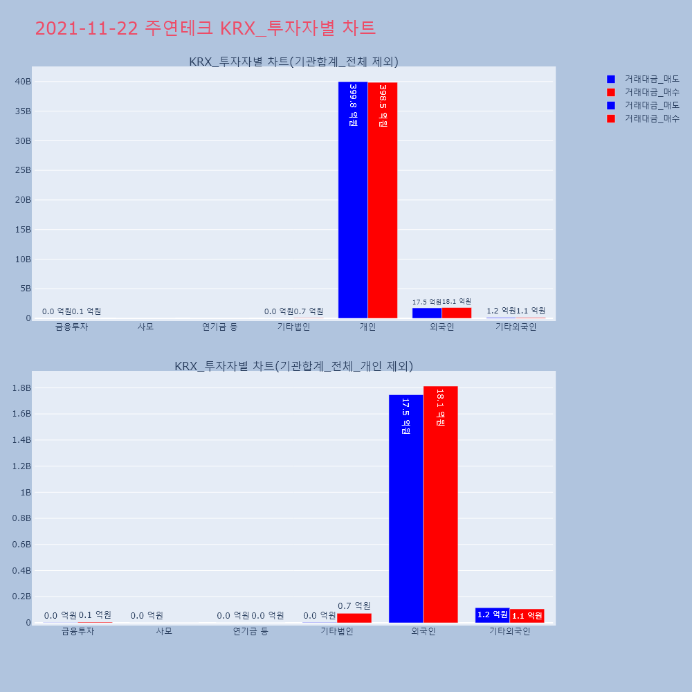 | 투자기관 | 거래량_매도 | 거래량_매수 | 거래량_순매수 | 거래대금_매도 | 거래대금_매수 | 거래대금_순매수 |