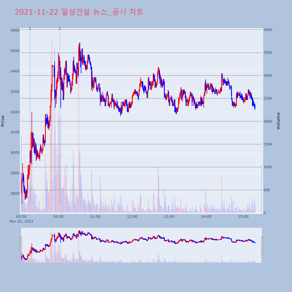 | 2 | 일성건설, +15.03% VI 발동일성건설(013360)이 VI가 발동했다. 전일 대비 | 조선경제 | 일성건설 | 2021-11-22 10:02:21 |