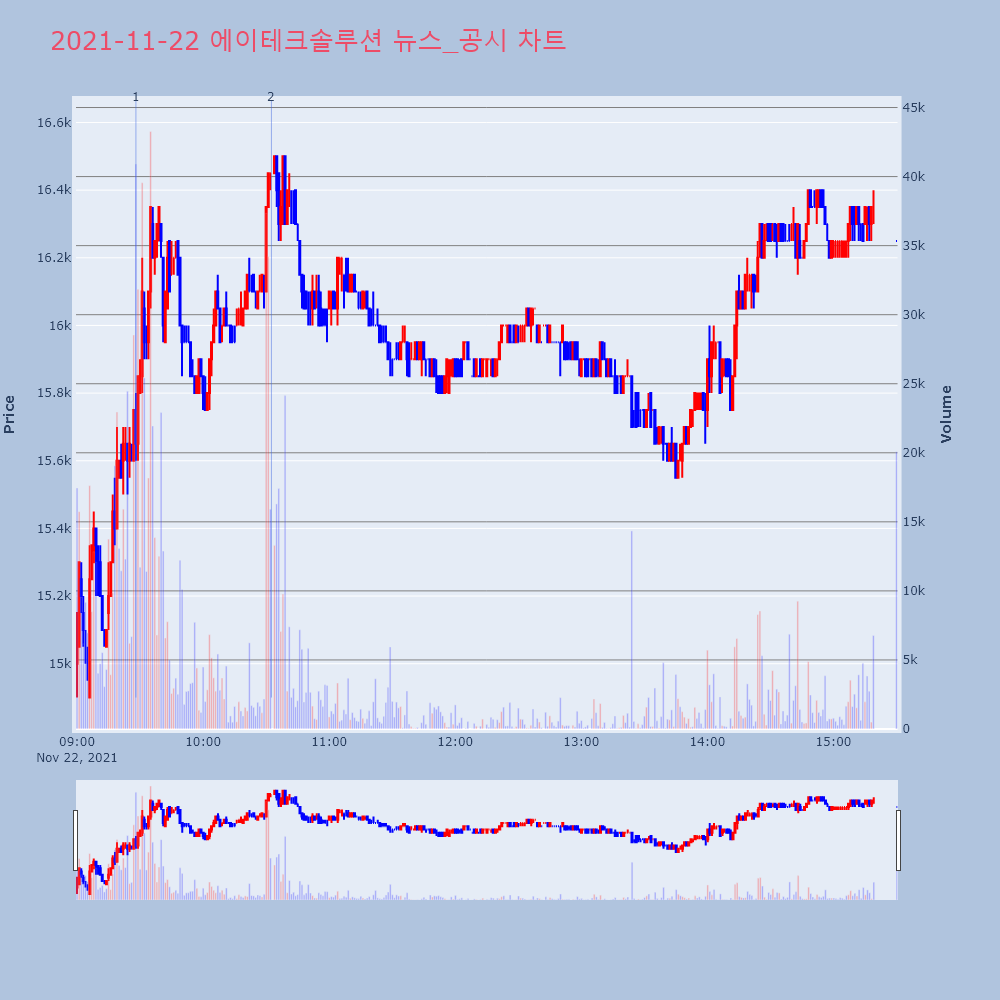 | 2 | 에이테크솔루션, +10.77% VI 발동에이테크솔루션(071670)이 VI가 발동했다. 전일 | 조선경제 | 에이테크솔루션 | 2021-11-22 10:32:30 |
