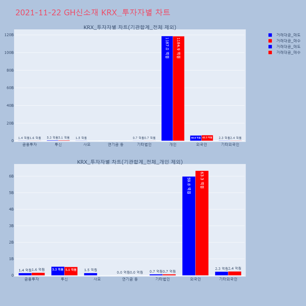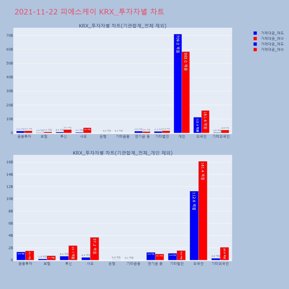 | 투자기관 | 거래량_매도 | 거래량_매수 | 거래량_순매수 | 거래대금_매도 | 거래대금_매수 | 거래대금_순매수 |
