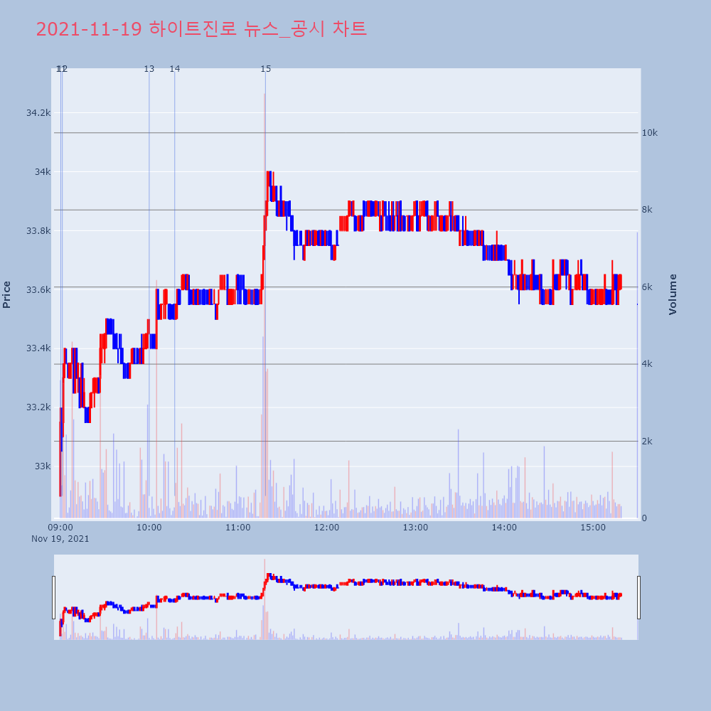| 14 | [장중수급포착] 하이트진로, 외국인 6일 연속 순매수행진... 주가 +1.98% [서울=뉴스핌] 로보뉴스 = 19일 10시 15분 현재 | 뉴스핌 | 하이트진로 | 2021-11-19 10:17:19 |