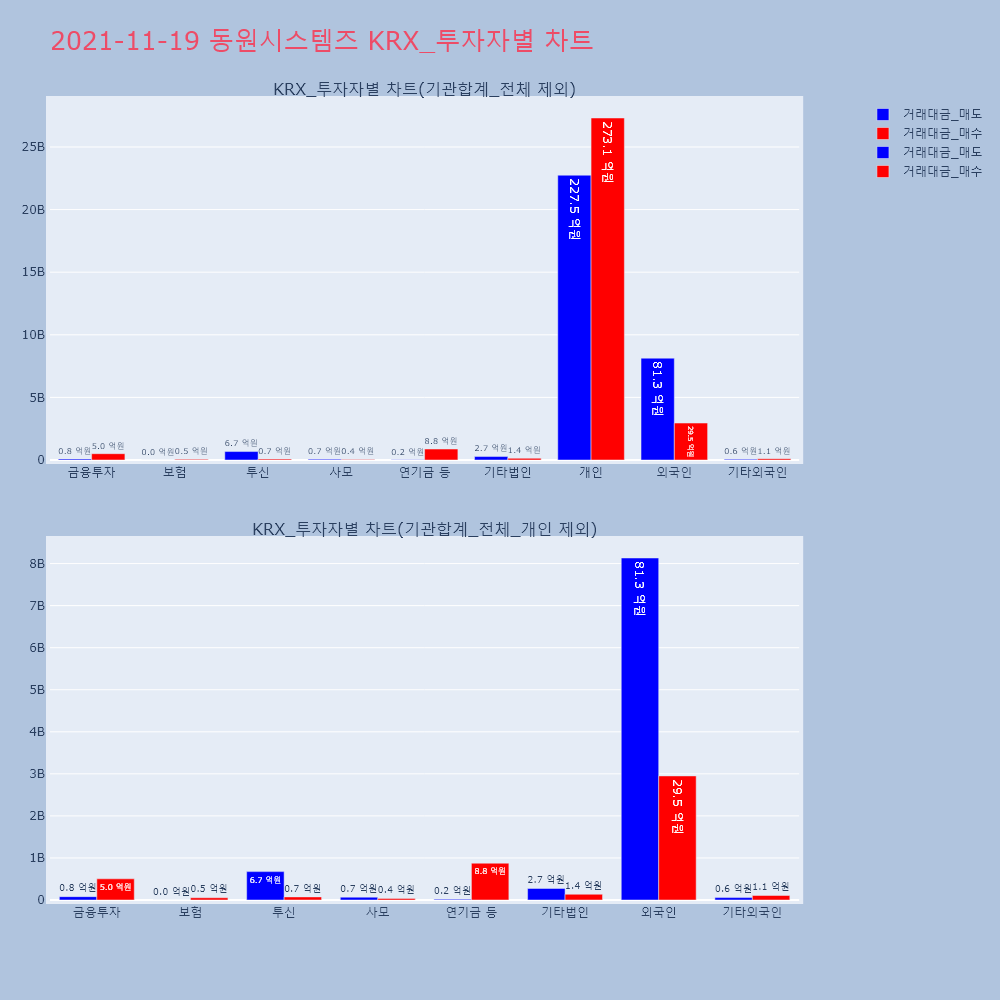 | 투자기관 | 거래량_매도 | 거래량_매수 | 거래량_순매수 | 거래대금_매도 | 거래대금_매수 | 거래대금_순매수 |