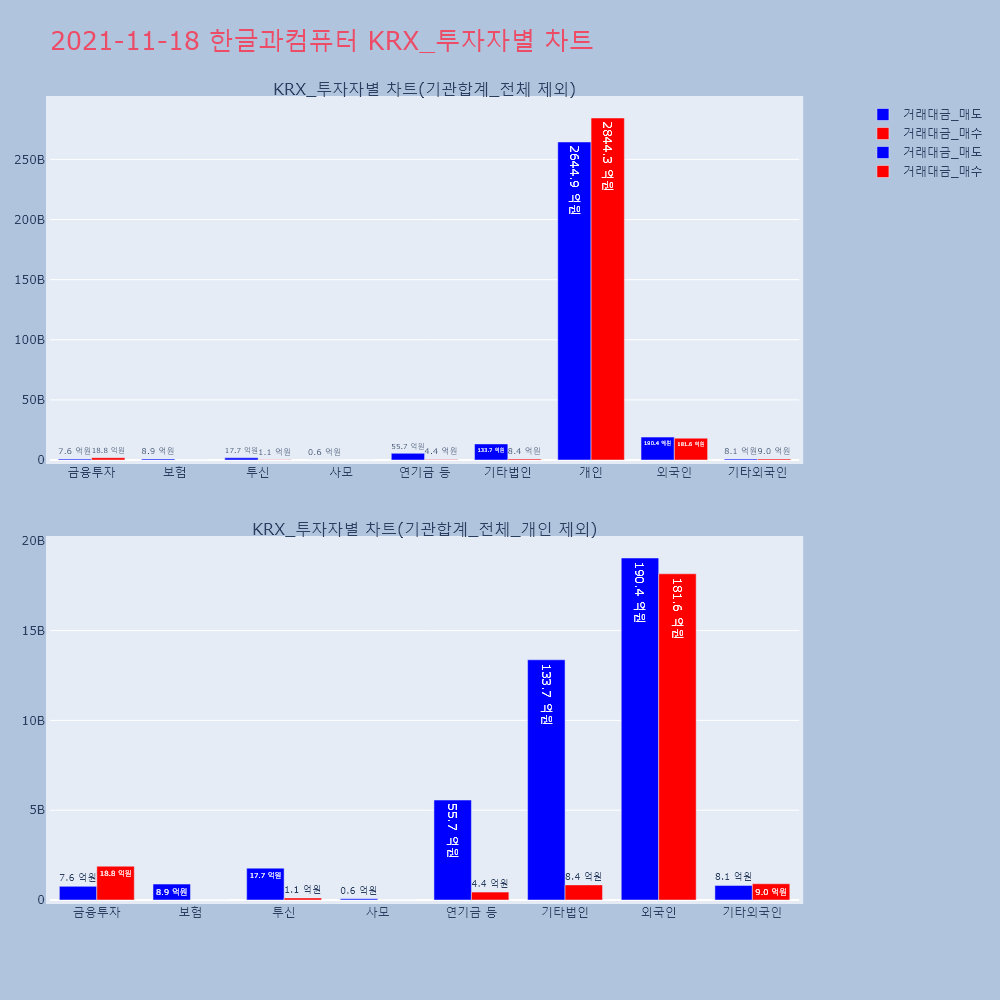 | 투자기관 | 거래량_매도 | 거래량_매수 | 거래량_순매수 | 거래대금_매도 | 거래대금_매수 | 거래대금_순매수 |