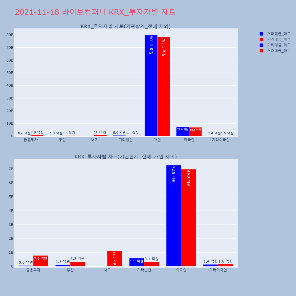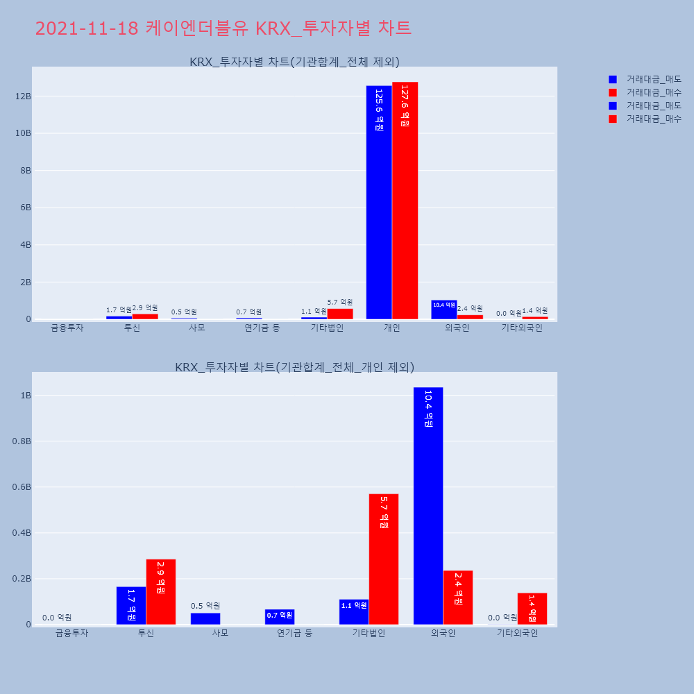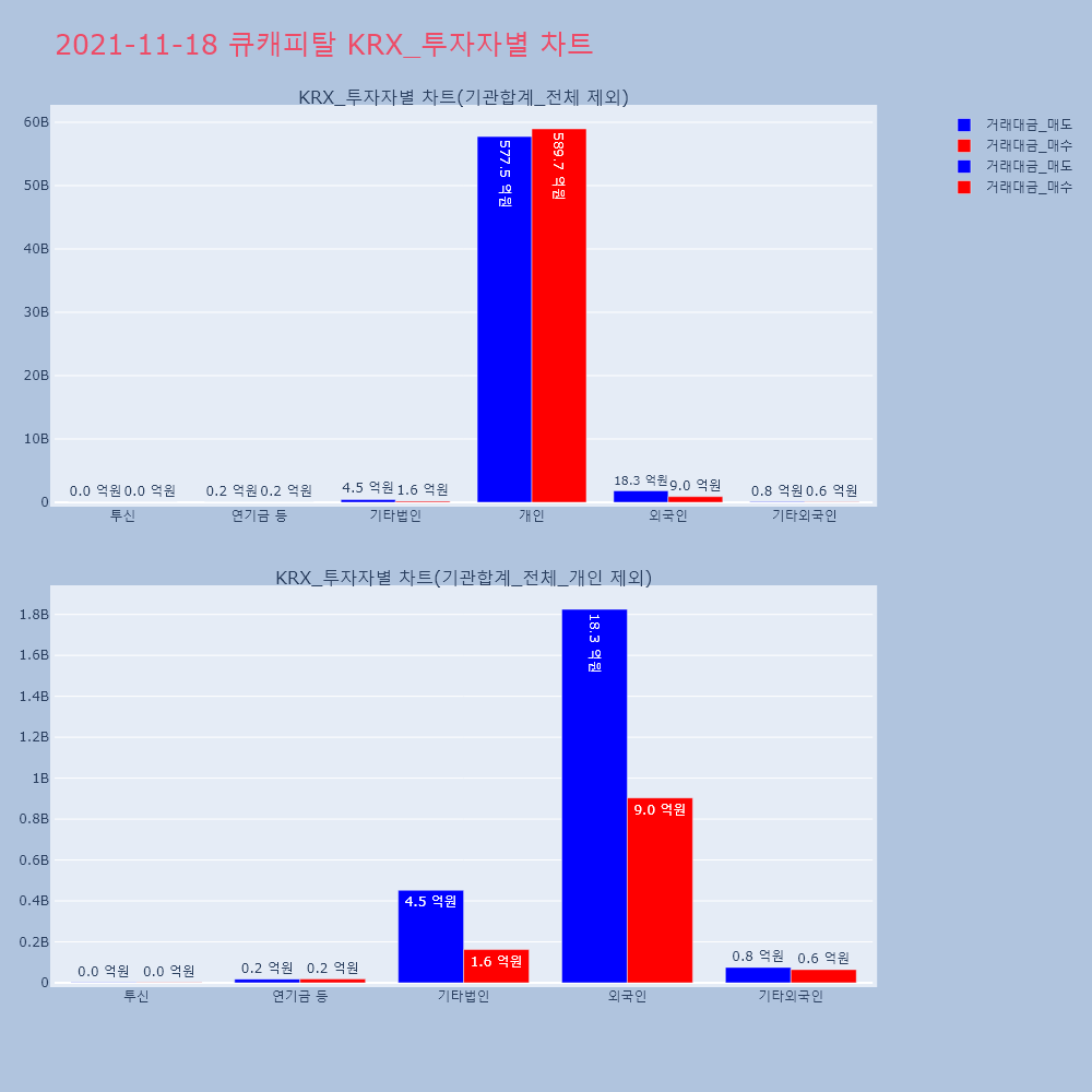 | 투자기관 | 거래량_매도 | 거래량_매수 | 거래량_순매수 | 거래대금_매도 | 거래대금_매수 | 거래대금_순매수 |