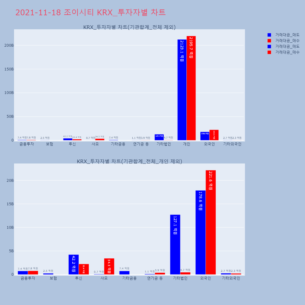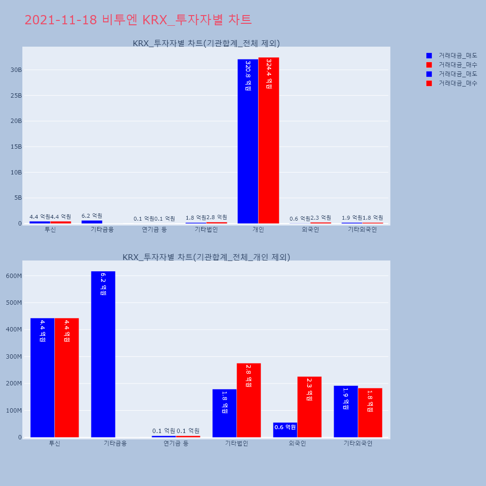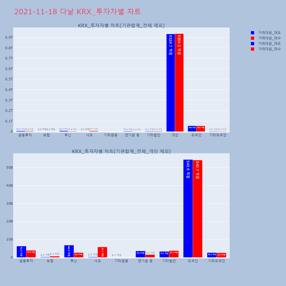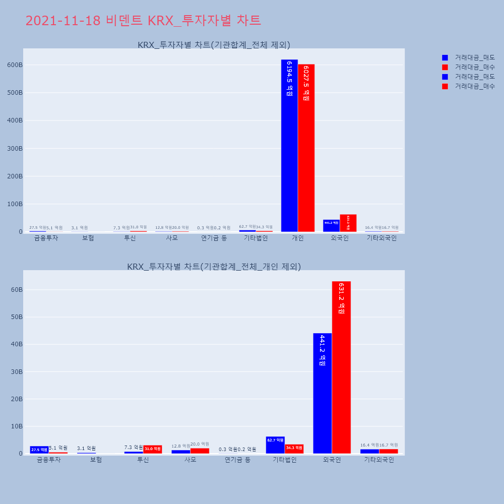 | 투자기관 | 거래량_매도 | 거래량_매수 | 거래량_순매수 | 거래대금_매도 | 거래대금_매수 | 거래대금_순매수 |