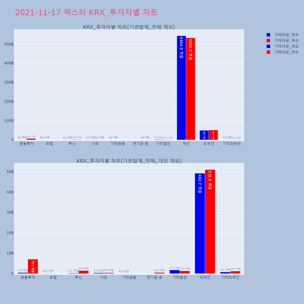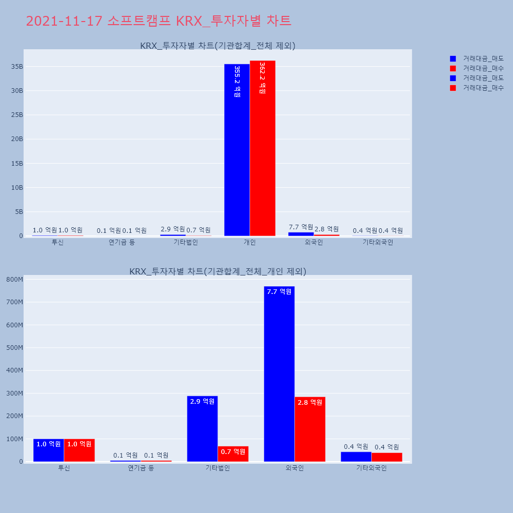 | 투자기관 | 거래량_매도 | 거래량_매수 | 거래량_순매수 | 거래대금_매도 | 거래대금_매수 | 거래대금_순매수 |