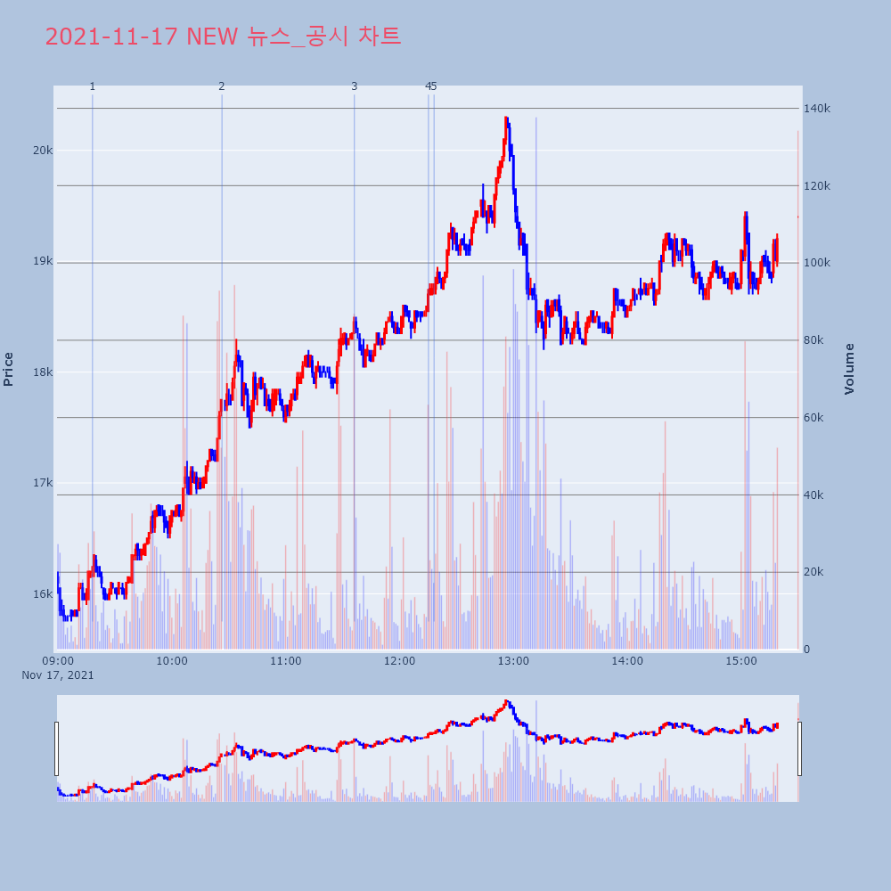 | 2021-11-17 10:45:00 | 20211117900168 | 주권매매거래정지 (무상증자) |