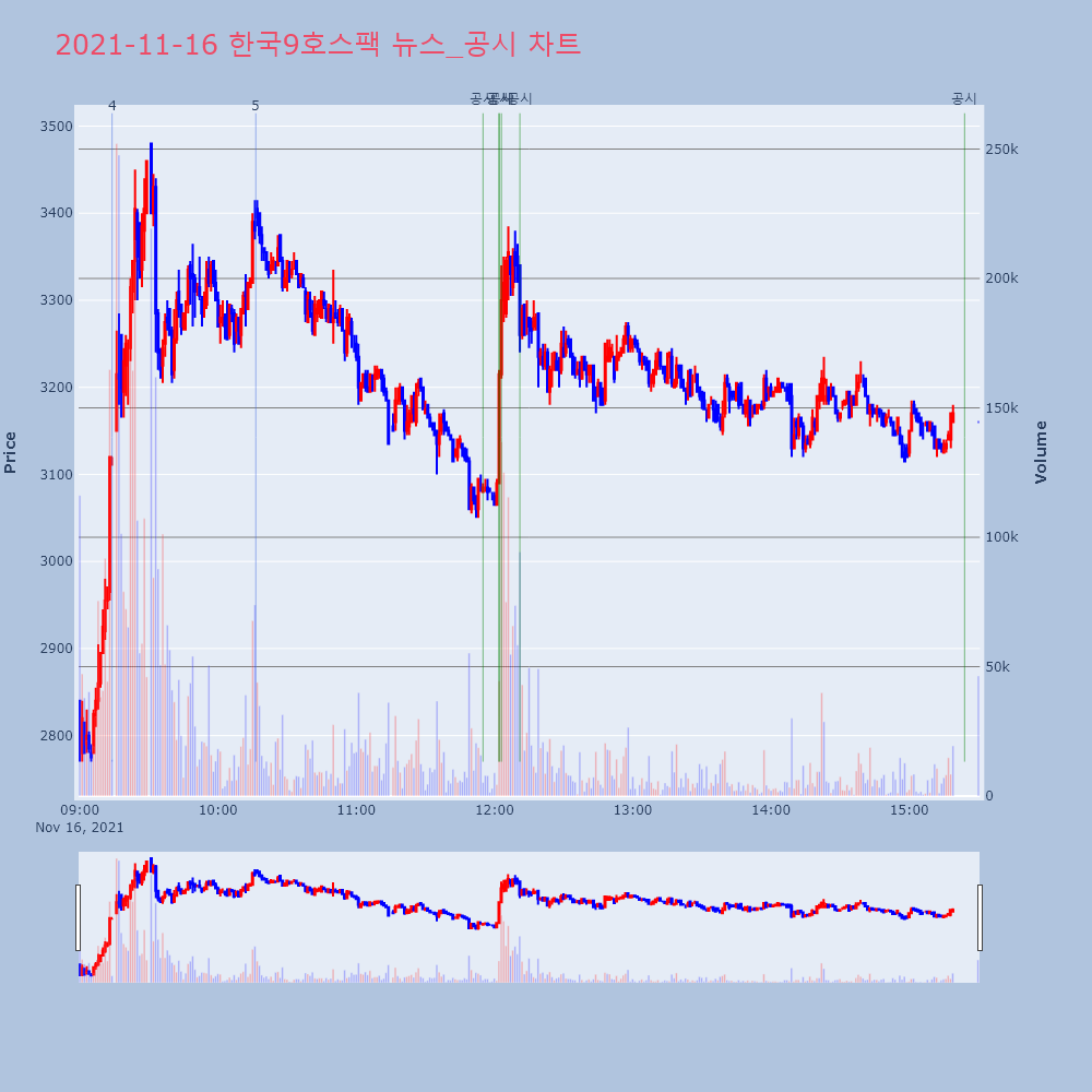 | 4 | 한국9호스팩, +9.09% VI 발동한국9호스팩(368770)이 VI가 발동했다. 전일 대 | 조선경제 | 한국9호스팩 | 2021-11-16 09:14:02 |