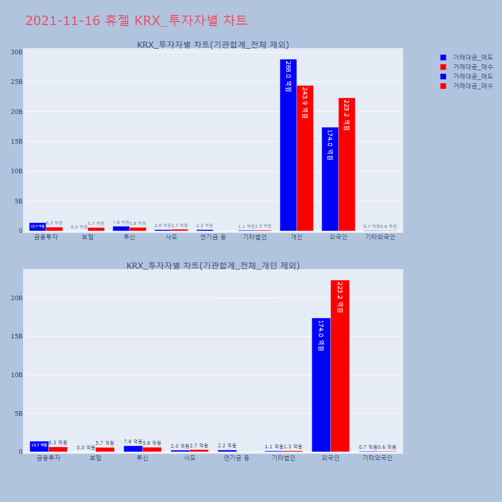 | 투자기관 | 거래량_매도 | 거래량_매수 | 거래량_순매수 | 거래대금_매도 | 거래대금_매수 | 거래대금_순매수 |