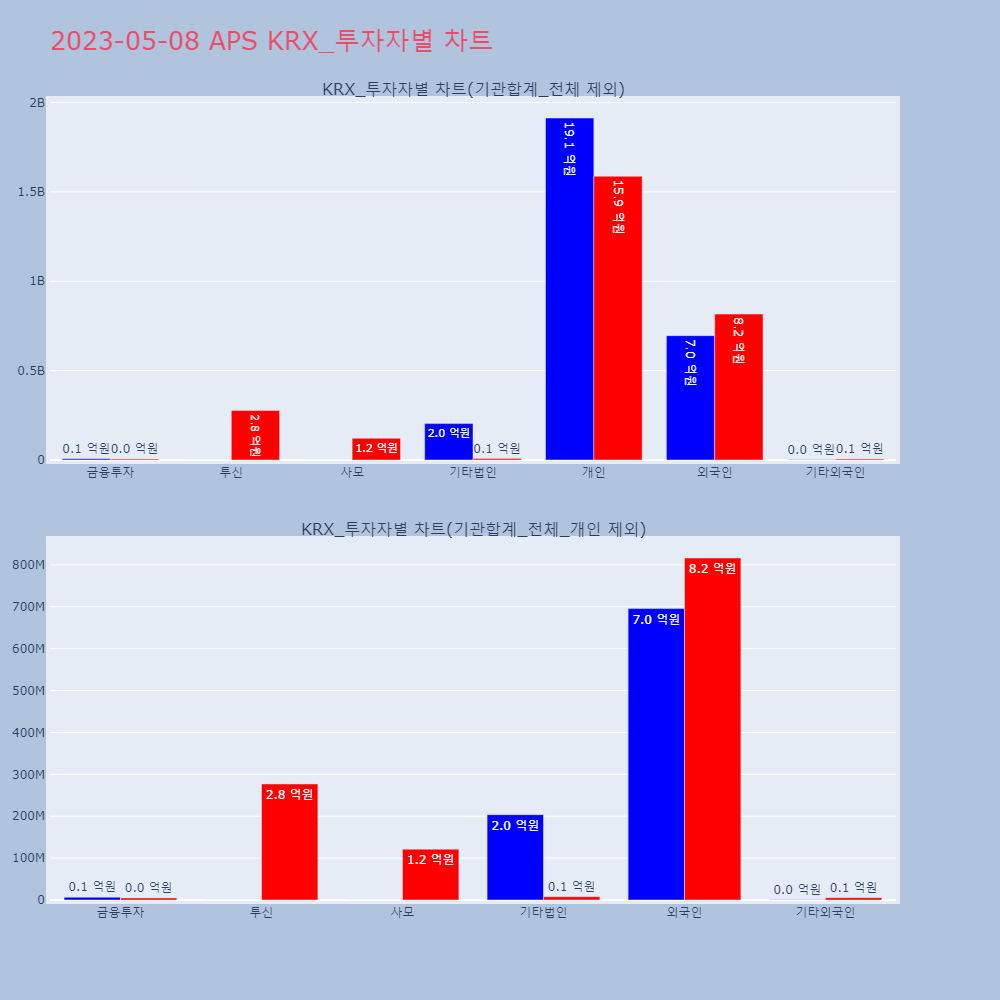 | 투자기관 | 매도량/금액(백) | 매수량/금액(백) | 순매수량/금액(백) |