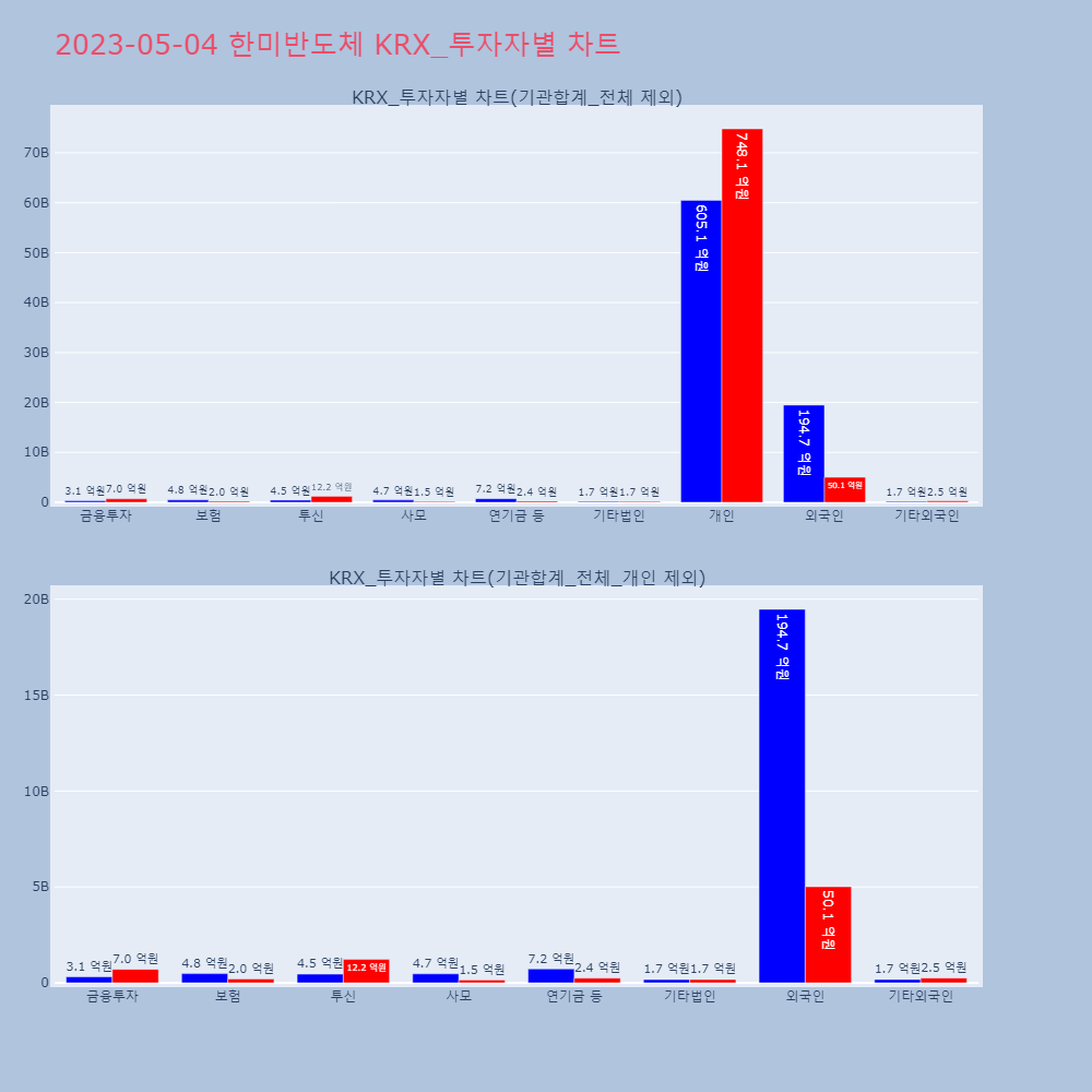 | 투자기관 | 매도량/금액(백) | 매수량/금액(백) | 순매수량/금액(백) |