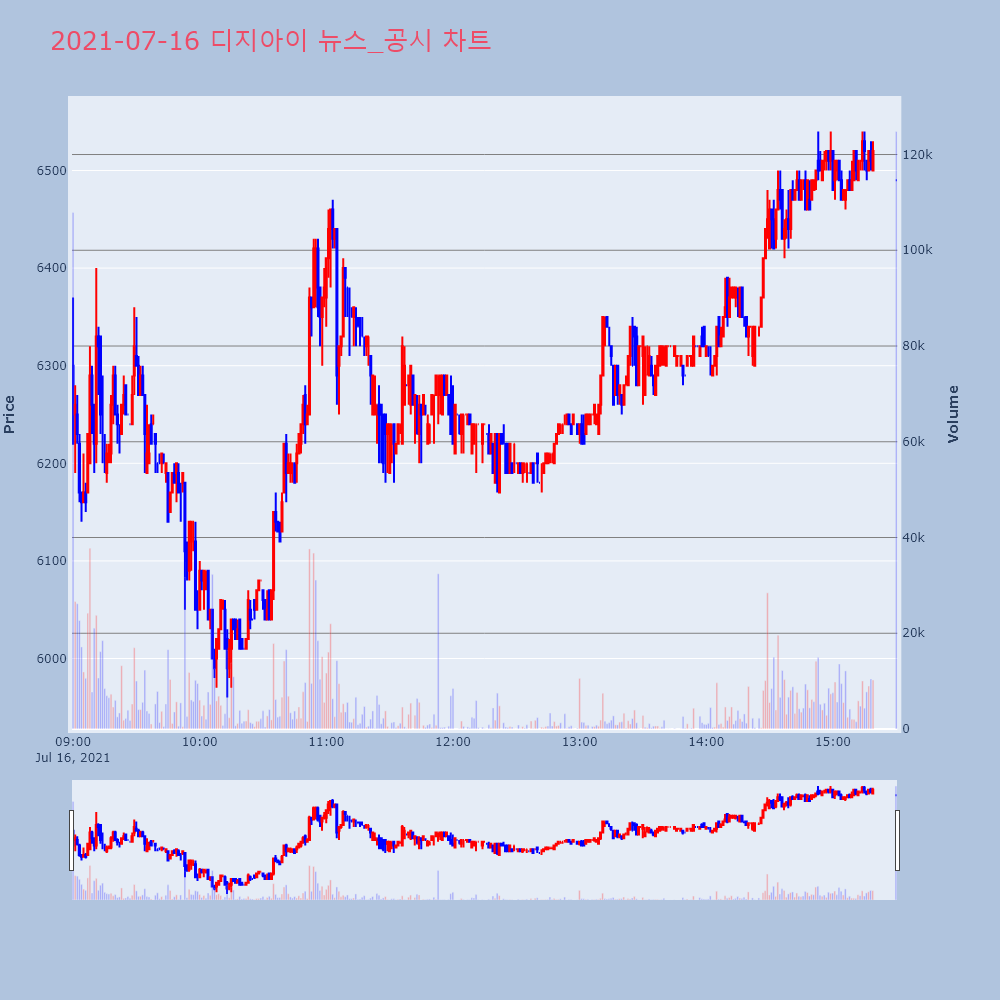 | 6 | 3 | '디지아이' 52주 신고가 경신, 단기·중기 이평선 정배열로 상승세◆ 차트 분석- 단기·중기 이평선 정배열로 상승세 | 한경/증권 | 디지아이 | 2021-07-15 09:08:26 |