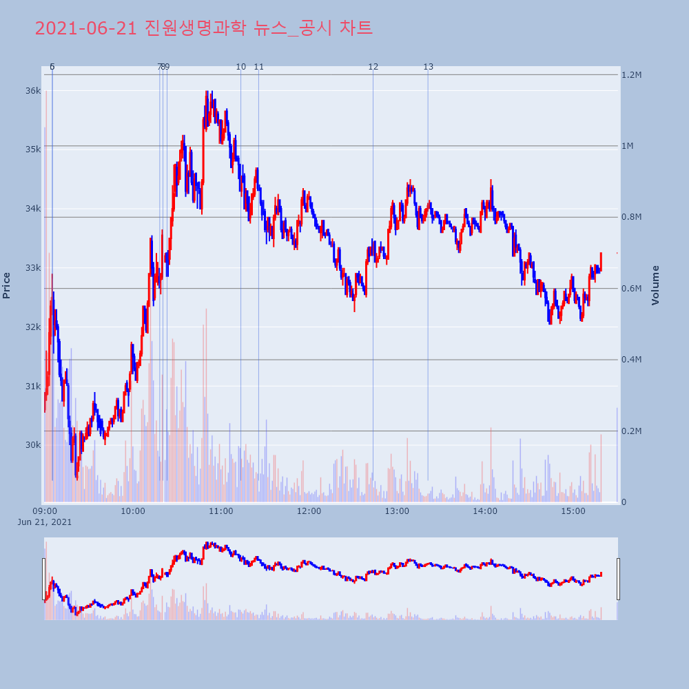 | 5 | 8 | 진원생명과학, +12.02% VI 발동진원생명과학(011000)이 VI가 발동했다. 전일 대 | 조선경제 | 진원생명과학 | 2021-06-21 10:20:30 |