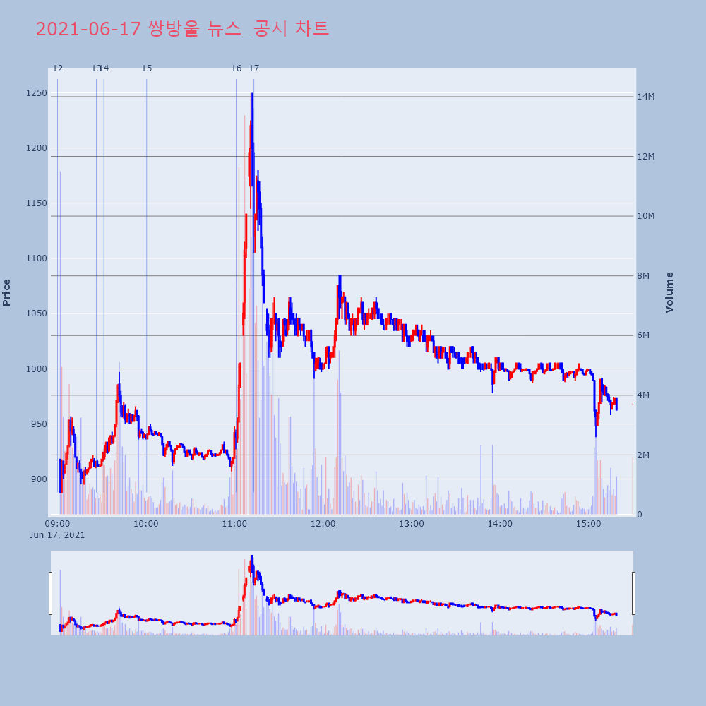 | 2 | 15 | 쌍방울, 이스타항공 인수 '고배'에 이틀 연속 급락[머니투데이 강민수 기자] [특징주]쌍방울이 이스타항공 | 머니투데이 | 쌍방울 | 2021-06-17 10:00:30 |