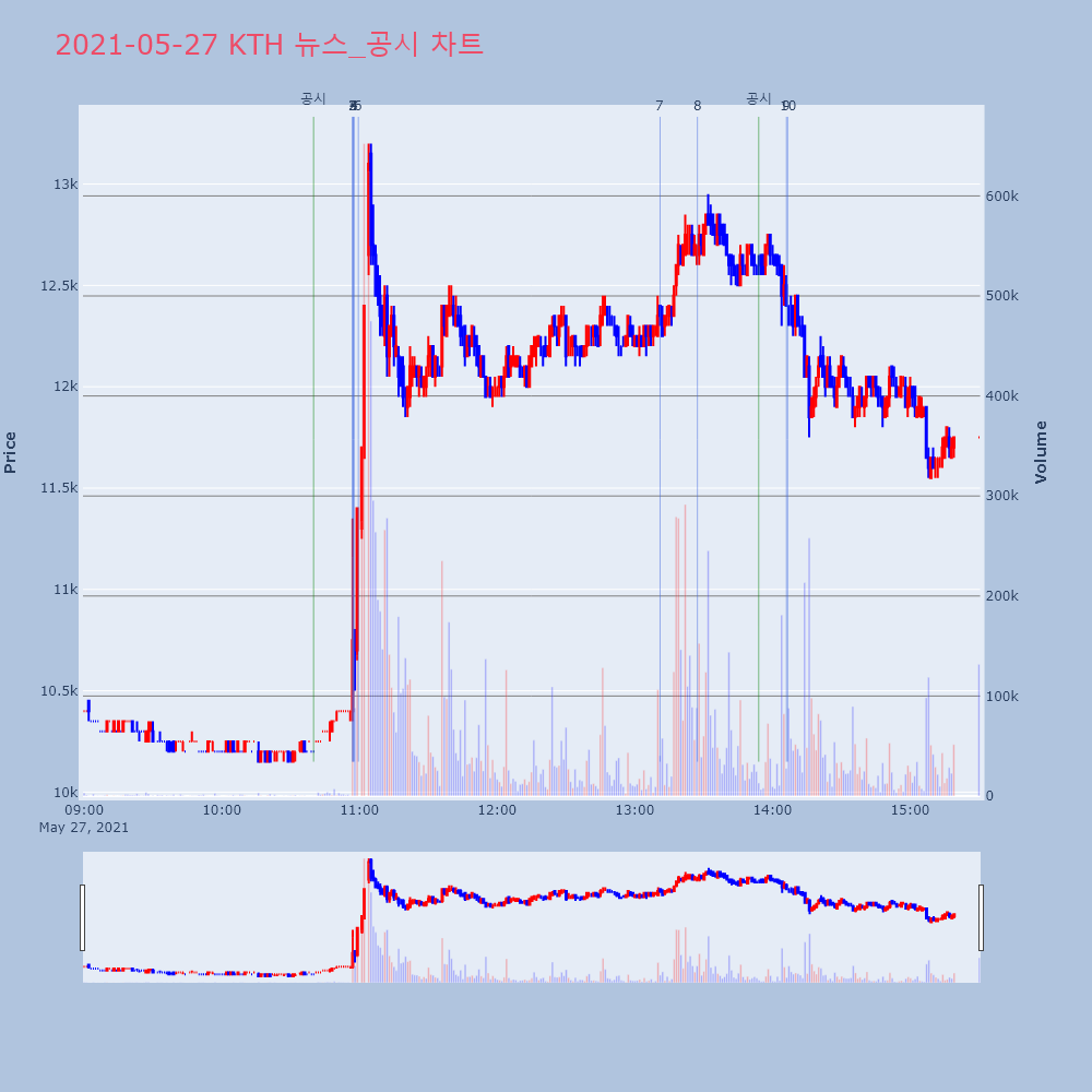 | 5 | 6 | KTH, +10.14% VI 발동KTH(036030)가 VI가 발동했다. 전일 대비 1 | 조선경제 | KTH | 2021-05-27 10:59:31 |