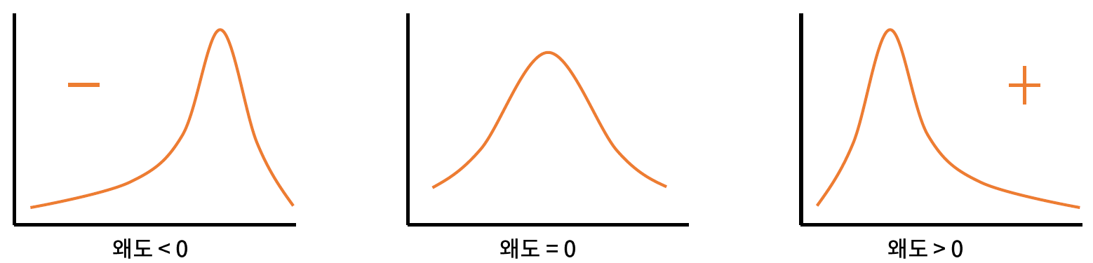 - 왜도 (skewness) : 분포의 비대칭도를 나타내는 통계량
