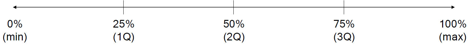 - 백분위수 (percentile)는 데이터를 크기 순서대로 오름차순 정렬했을 때, 백분율로 나타낸 특정 위치의 값을 의미