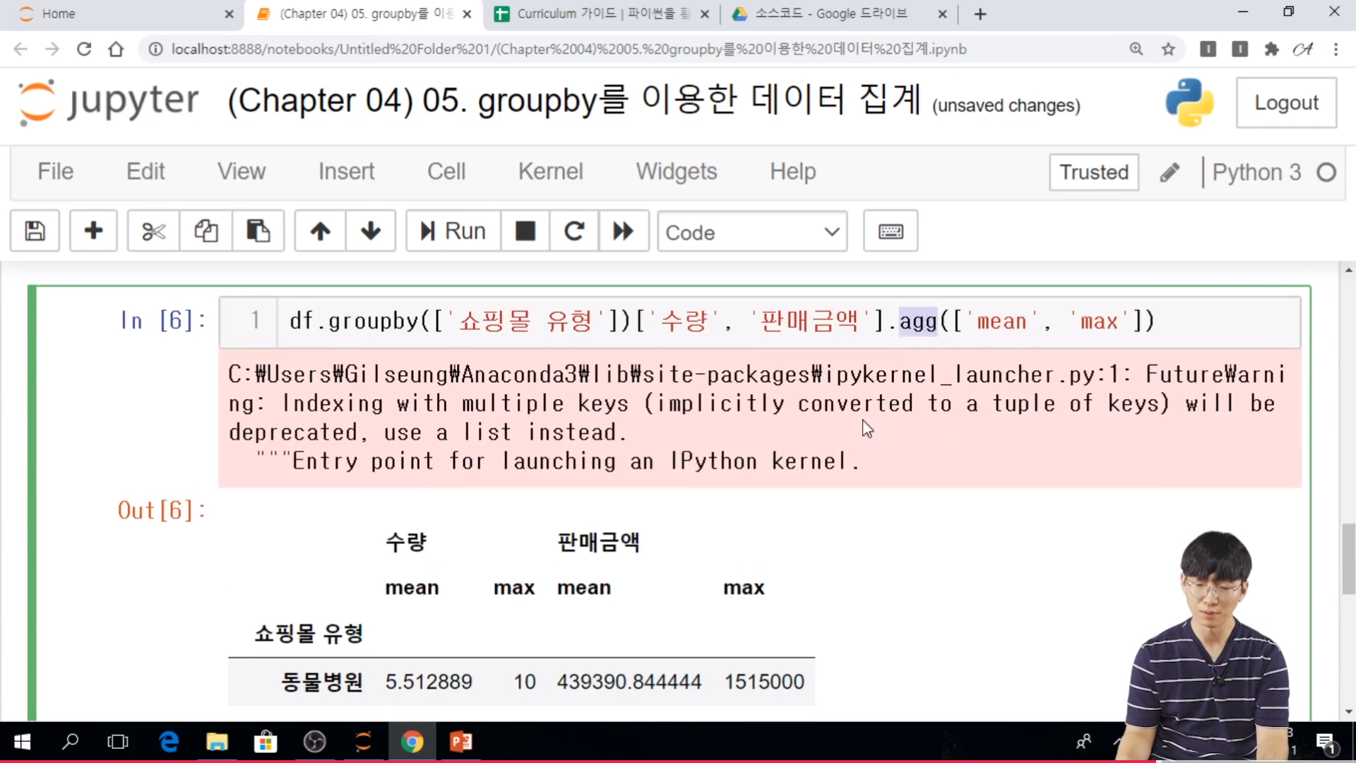 [01. Part 1) 데이터 핸들링 Chapter 04. 한 눈에 데이터 보기 - 데이터 통합 및 집계 - 05. groupby를 이용한 데이터 집계]