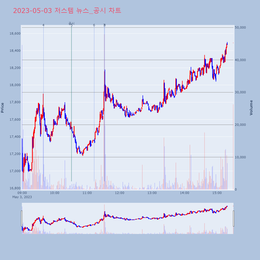 | 4 | [특징주] 저스템, 반도체 습도 제어시스템 기술력 부각에 강세 제목 : [특징주] 저스템, 반도체 습도 제어시스템 기 | 인포스탁 | 저스템 | 2023-05-03 09:39:31 |