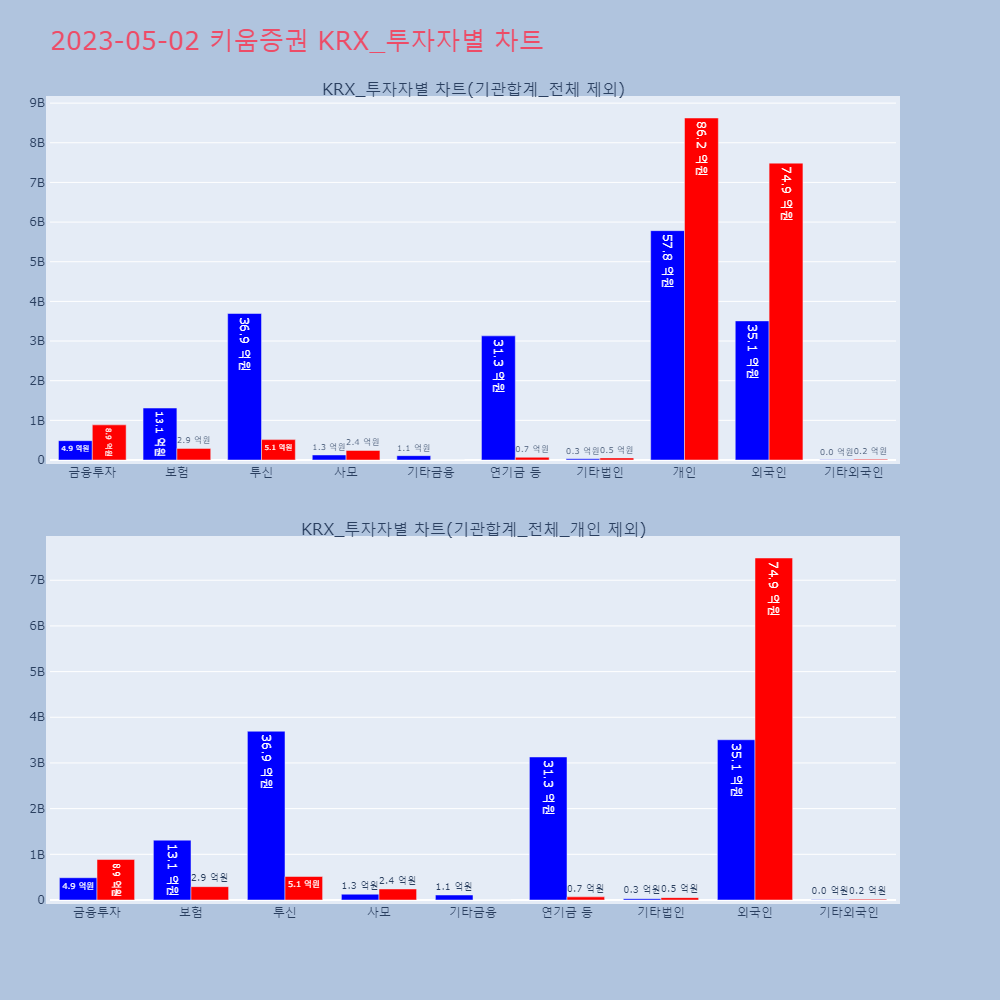 | 투자기관 | 매도량/금액(백) | 매수량/금액(백) | 순매수량/금액(백) |