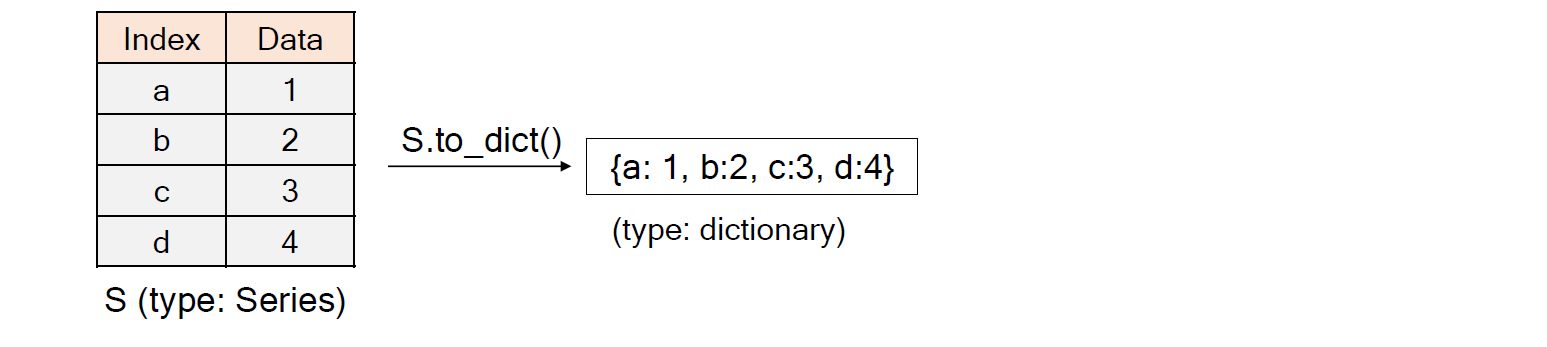 - Series.to_dict( ) : Series 의 index 를 Key 로, data 를 Valu로 하는 사전으로 변환
