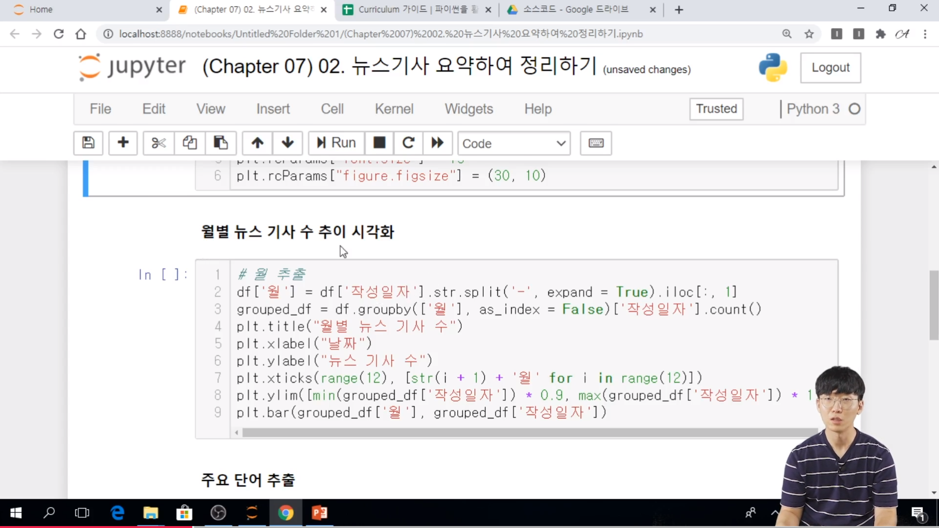 - 뉴스 키워드를 모아서 주요 빈도 등을 graph 를 통해서 insight 얻는 방법을 알아봤고, 탐색적 분석을 통해서 어떤게 마주한 문제들을 해결할 수 있을지에 대해서도 알아봤다.