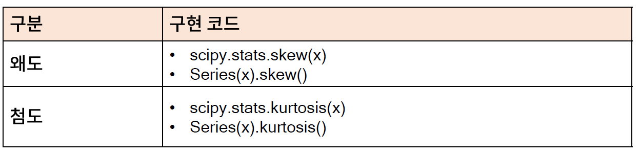 - 왜도 (skewness) : 분포의 비대칭도를 나타내는 통계량