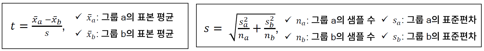 - 두 그룹의 분산이 같은 경우