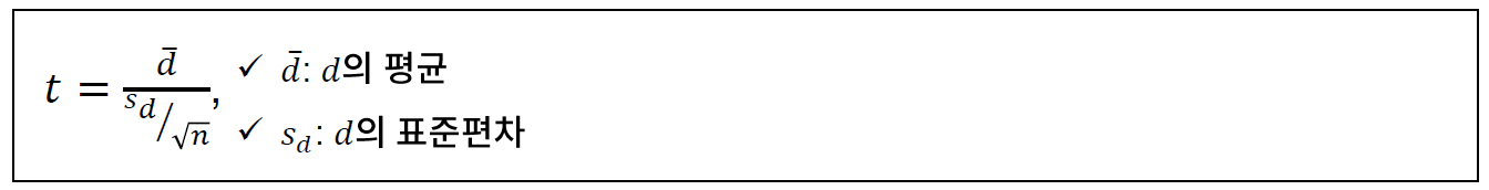 - 그러나 측정 값의 차이인 d는 정규성을 갖고 있어야 한다.