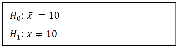 - 가설 수립 예시 : 당신이 한 웹 사이트를 운영하고 있는데, 고객이 웹사이트에서 체류하는 평균 시간이 10분인지 아닌지를 알고 싶어 다음과 같이 가설을 수립하였다.