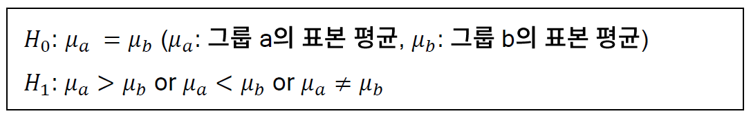 - 목적 : 서로 다른 두 그룹의 데이터 평균 비교
