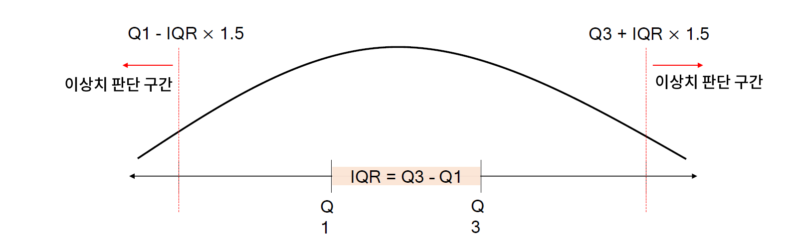 - 변수 범위에서 많이 벗어난 아주 작은 값이나 아주 큰 값으로, 일반화된 모델을 생성하는데 악영향을 끼치는 값으로 이상치를 포함하는 레코드를 제거하는 방법으로 이상치를 제거한다. (절대 추정의 대상이 아님에 주의)