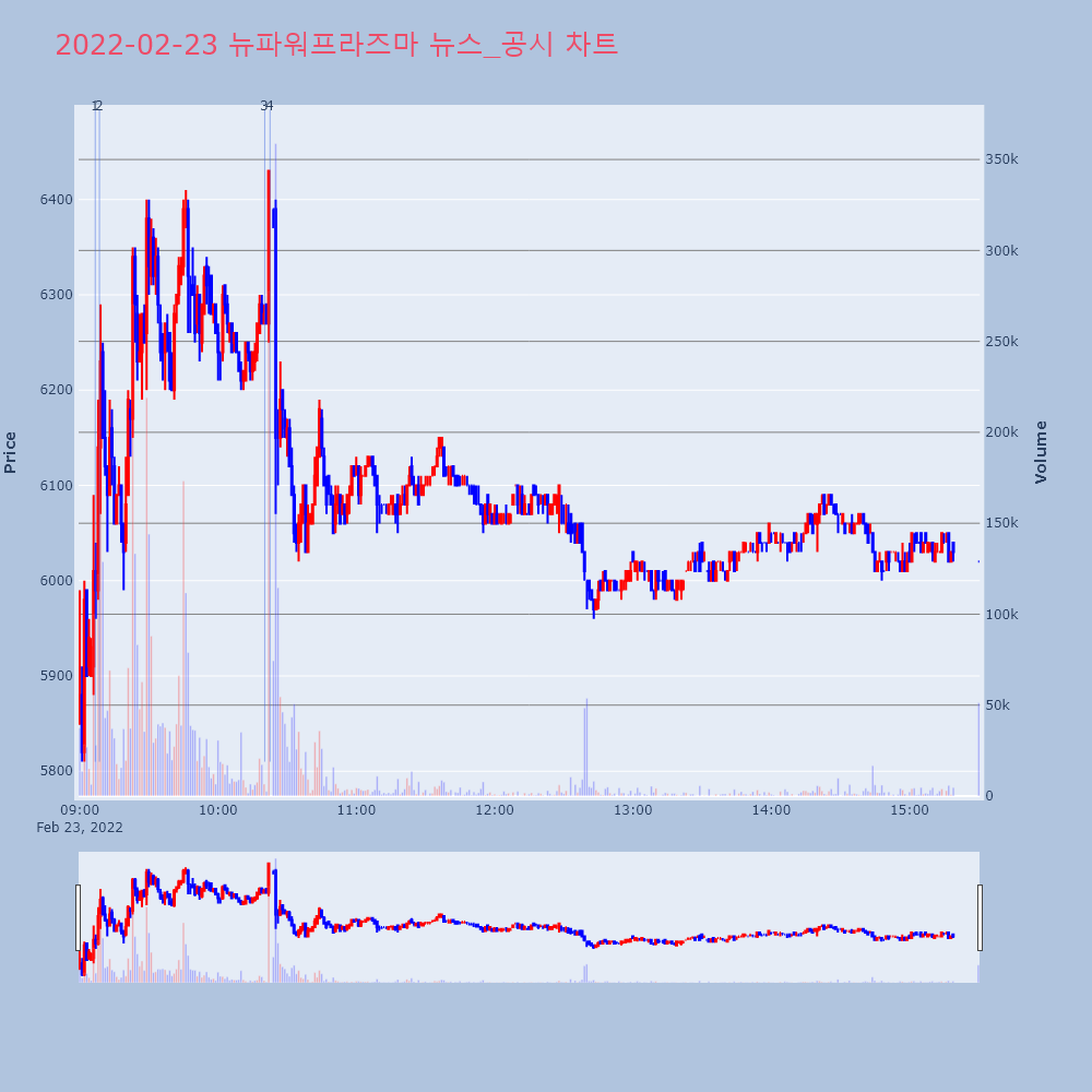13. 2022.02.23 2022. 02. 23 특징주 하이브 아이에스동서 티웨이항공 뉴파워프라즈마 플리토 코나아이 케이에스피