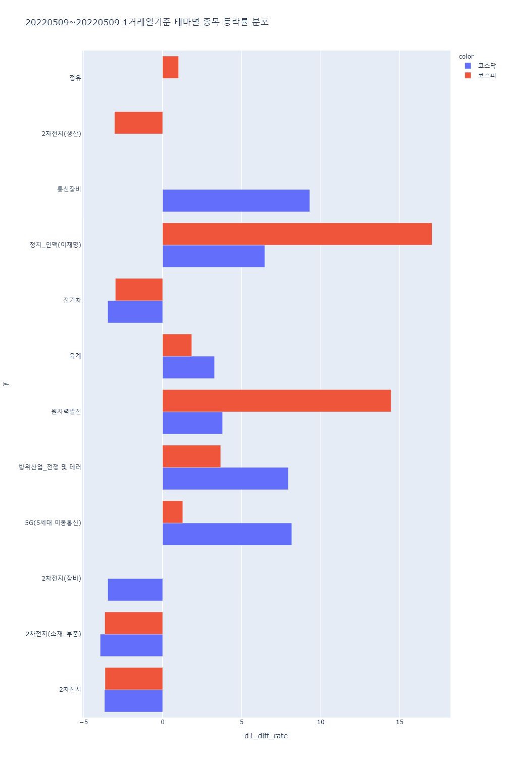▷이 외에 통신, 태양광에너지, 면세점, 백화점, 남북경협, 폐기물처리, PCB(FPCB 등), 아이폰, 갤럭시 부품주 등의 테마가 상승률 상위를 기록.