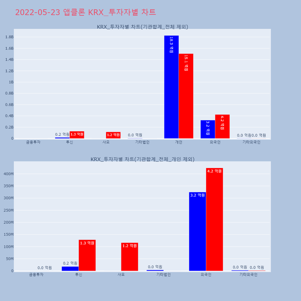 | 개인 | 22,806 | 16,982 | -5,824 | 2,104,220,400 | 1,566,723,800 | -537,496,600 |