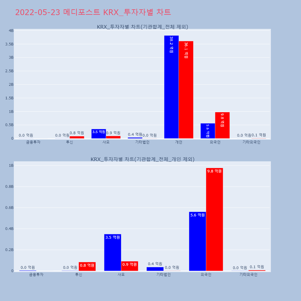 | 투자기관 | 거래량_매도 | 거래량_매수 | 거래량_순매수 | 거래대금_매도 | 거래대금_매수 | 거래대금_순매수 |
