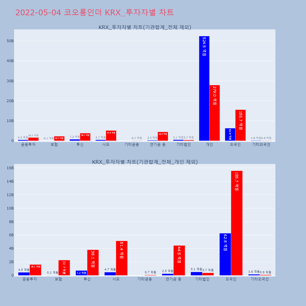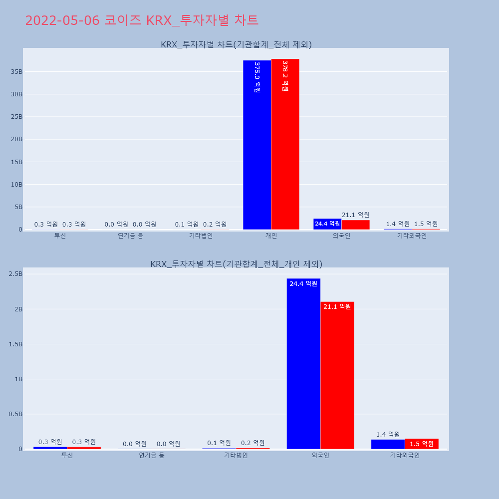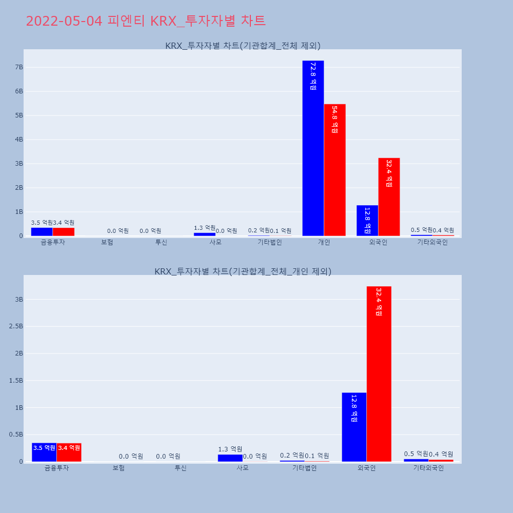 | 투자기관 | 거래량_매도 | 거래량_매수 | 거래량_순매수 | 거래대금_매도 | 거래대금_매수 | 거래대금_순매수 |