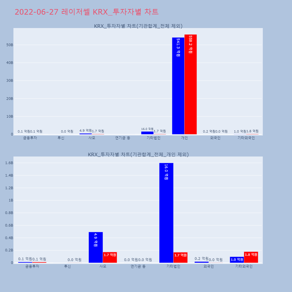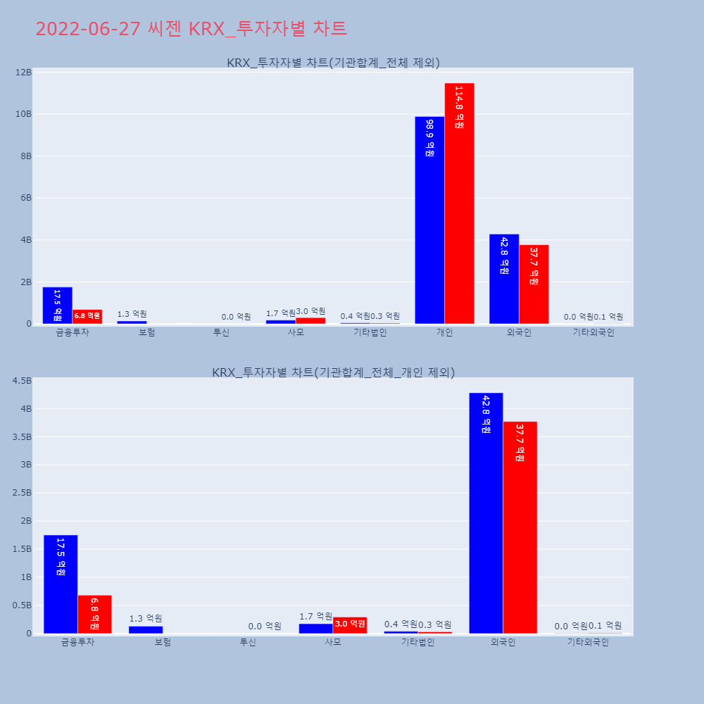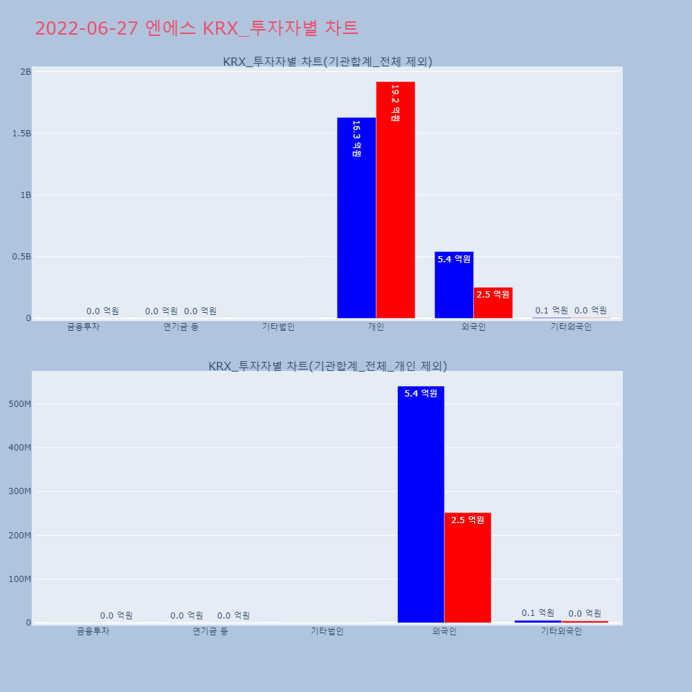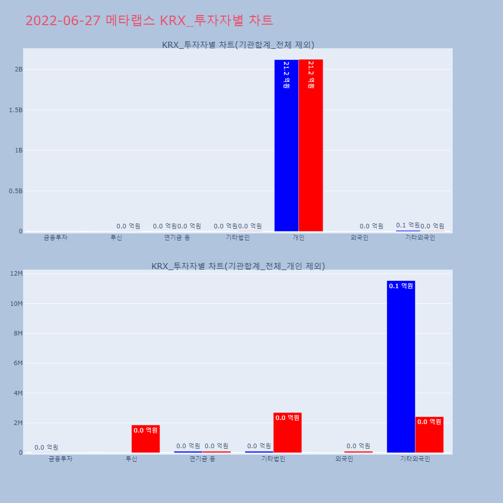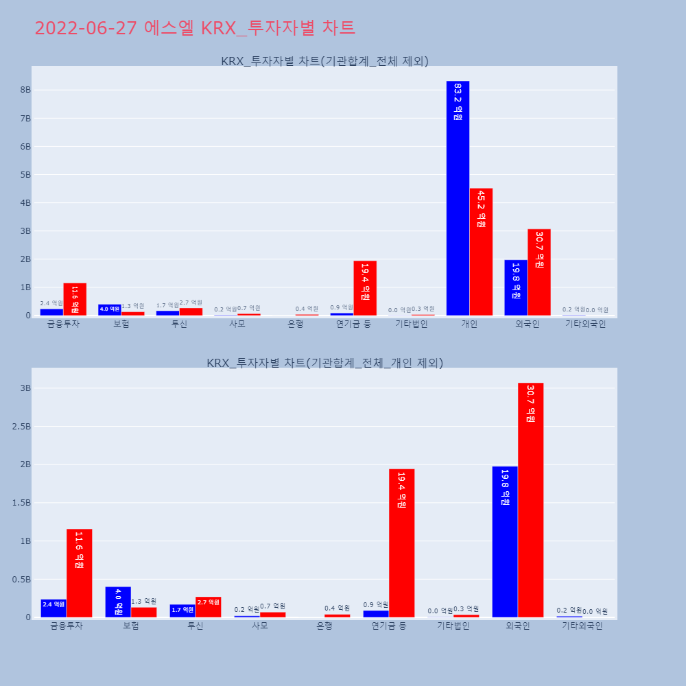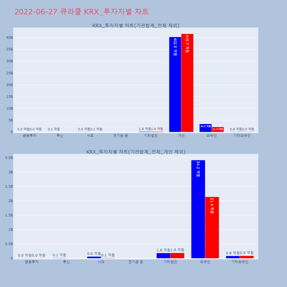 | 투자기관 | 거래량_매도 | 거래량_매수 | 거래량_순매수 | 거래대금_매도 | 거래대금_매수 | 거래대금_순매수 |