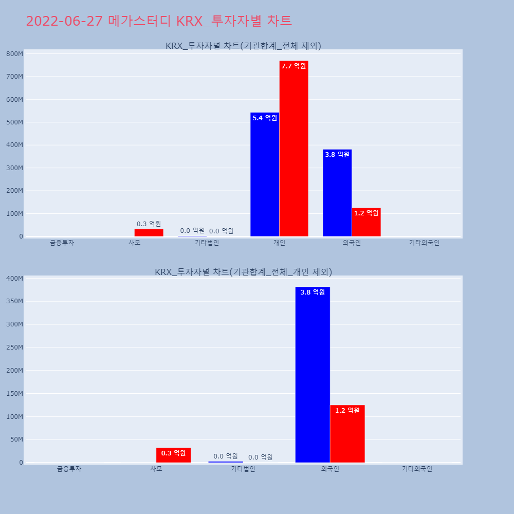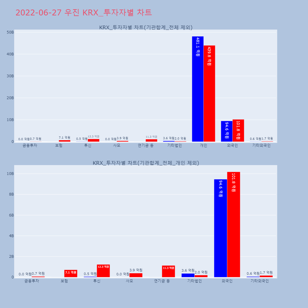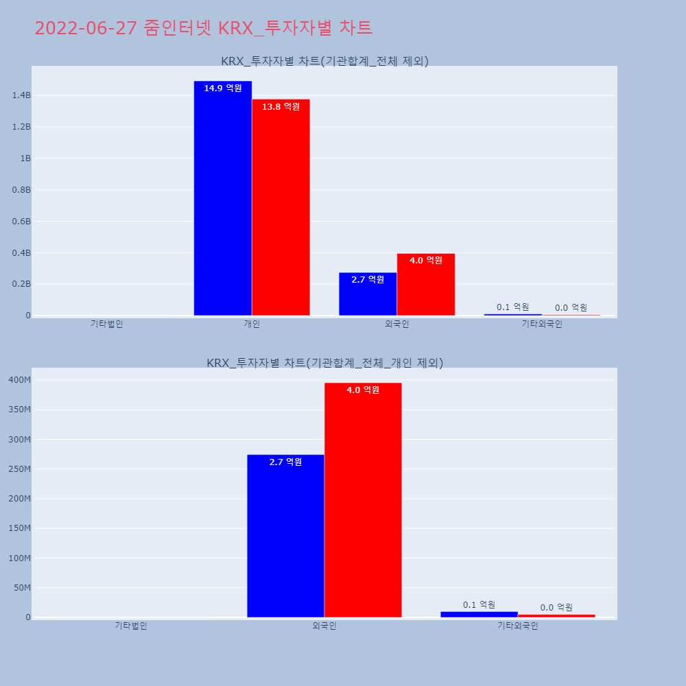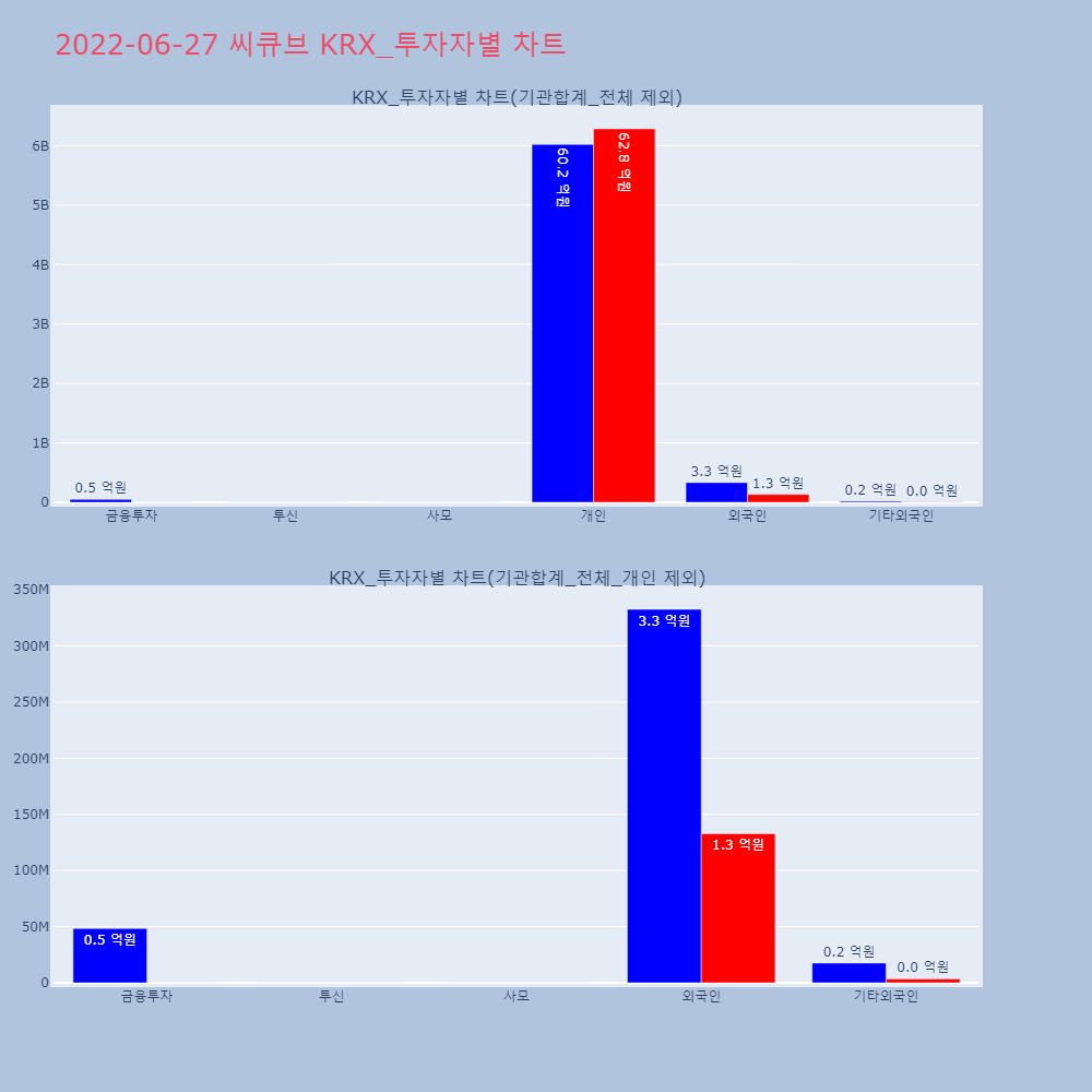 | 투자기관 | 거래량_매도 | 거래량_매수 | 거래량_순매수 | 거래대금_매도 | 거래대금_매수 | 거래대금_순매수 |