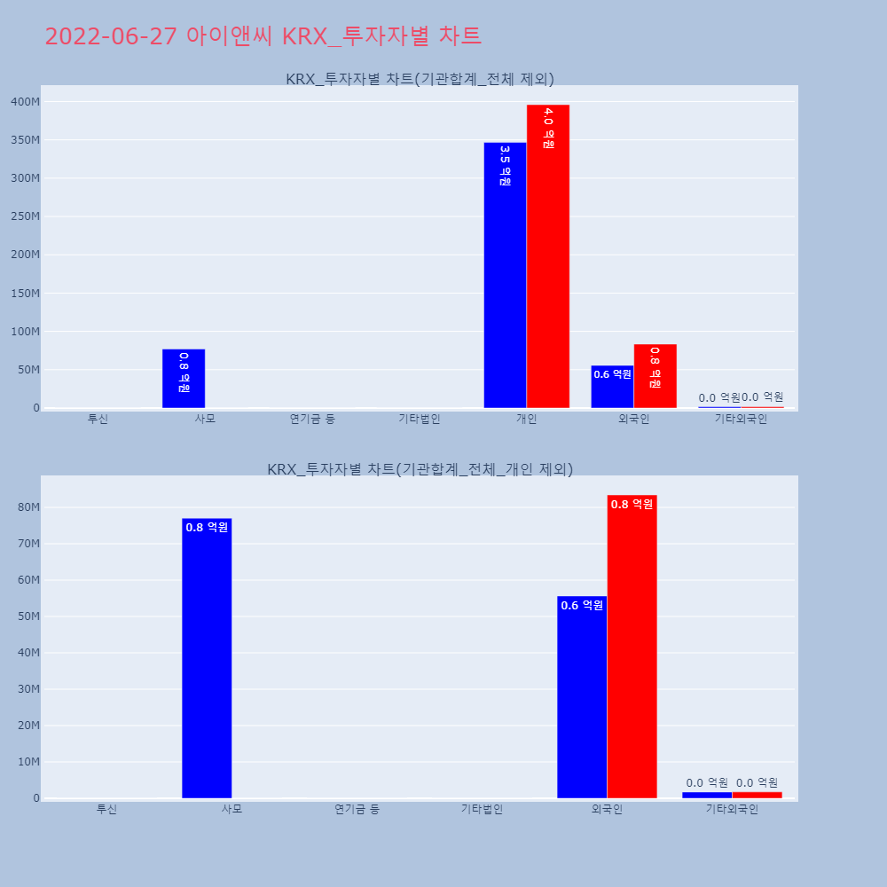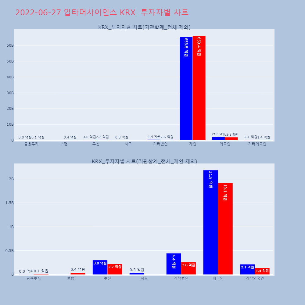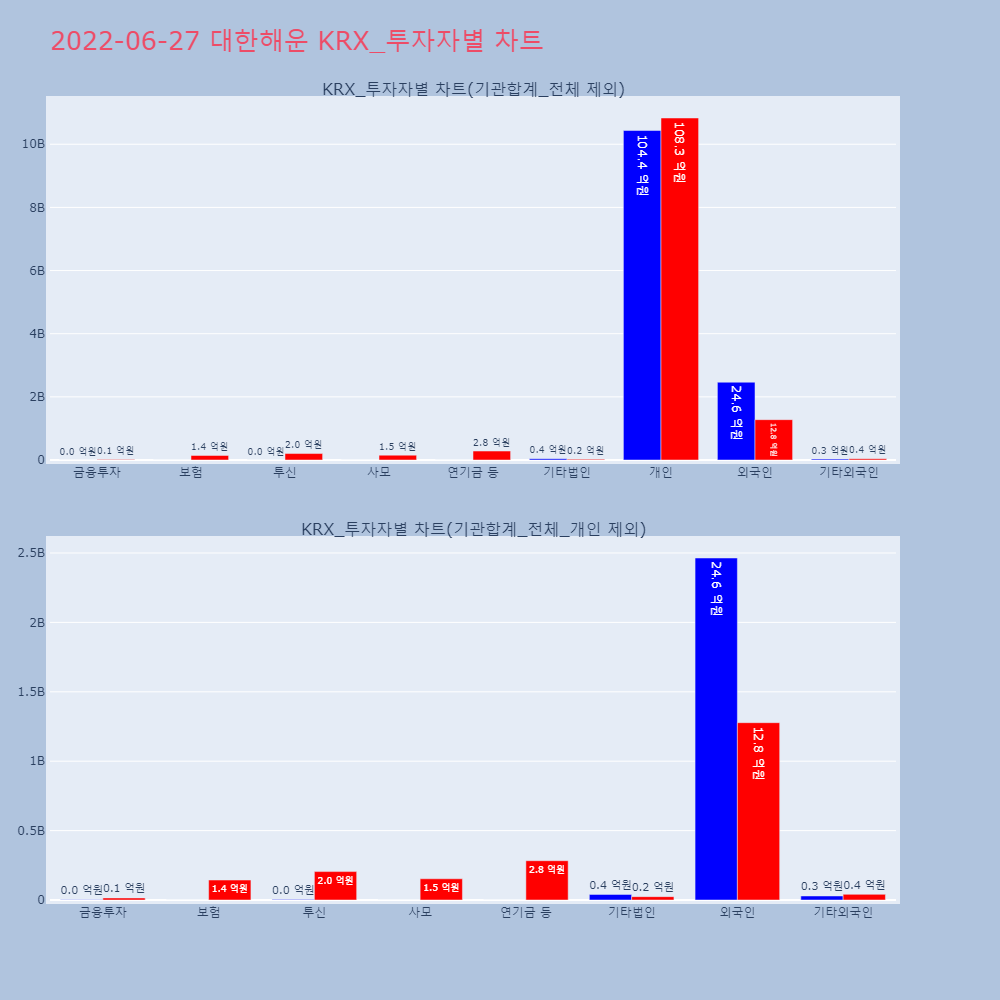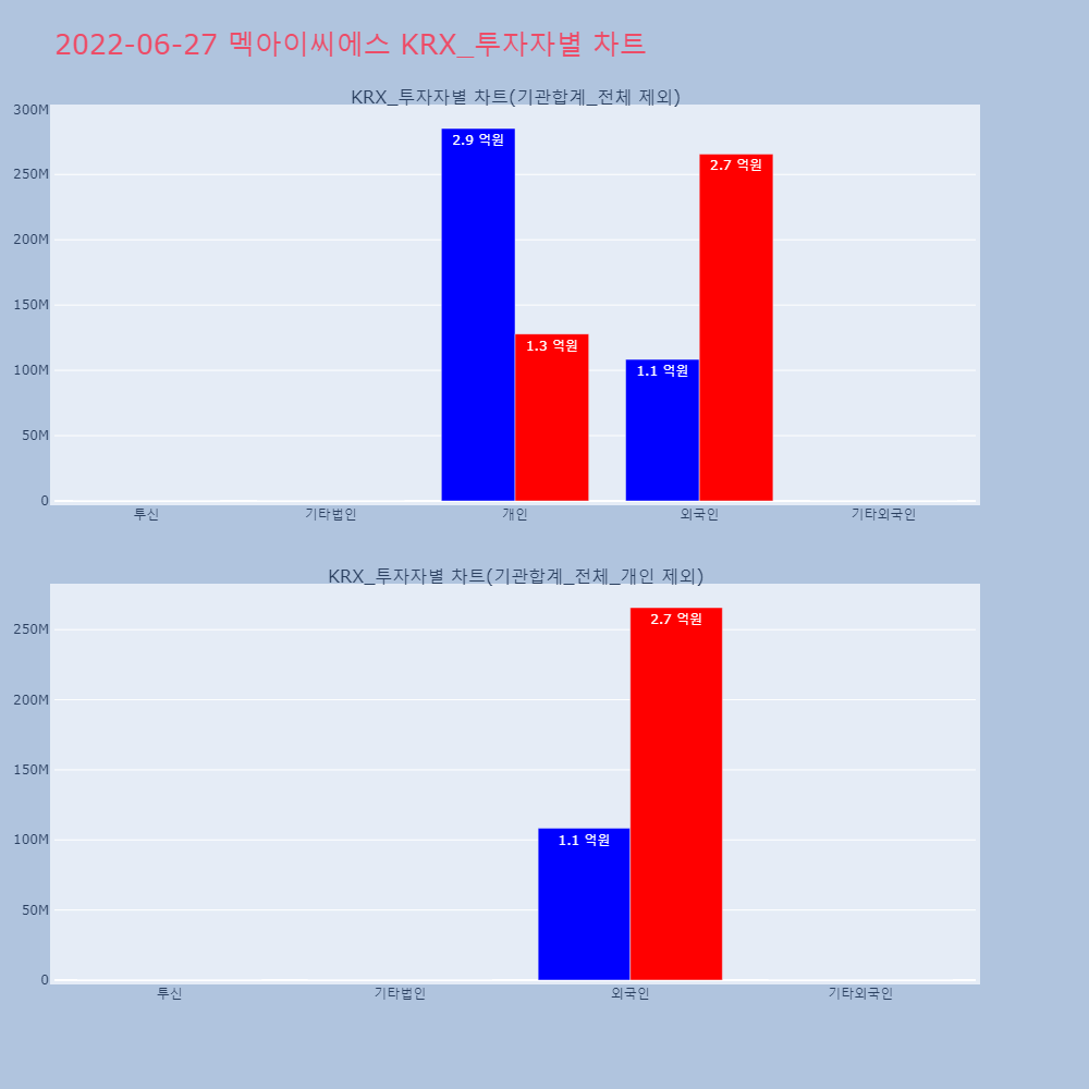 | 투자기관 | 거래량_매도 | 거래량_매수 | 거래량_순매수 | 거래대금_매도 | 거래대금_매수 | 거래대금_순매수 |