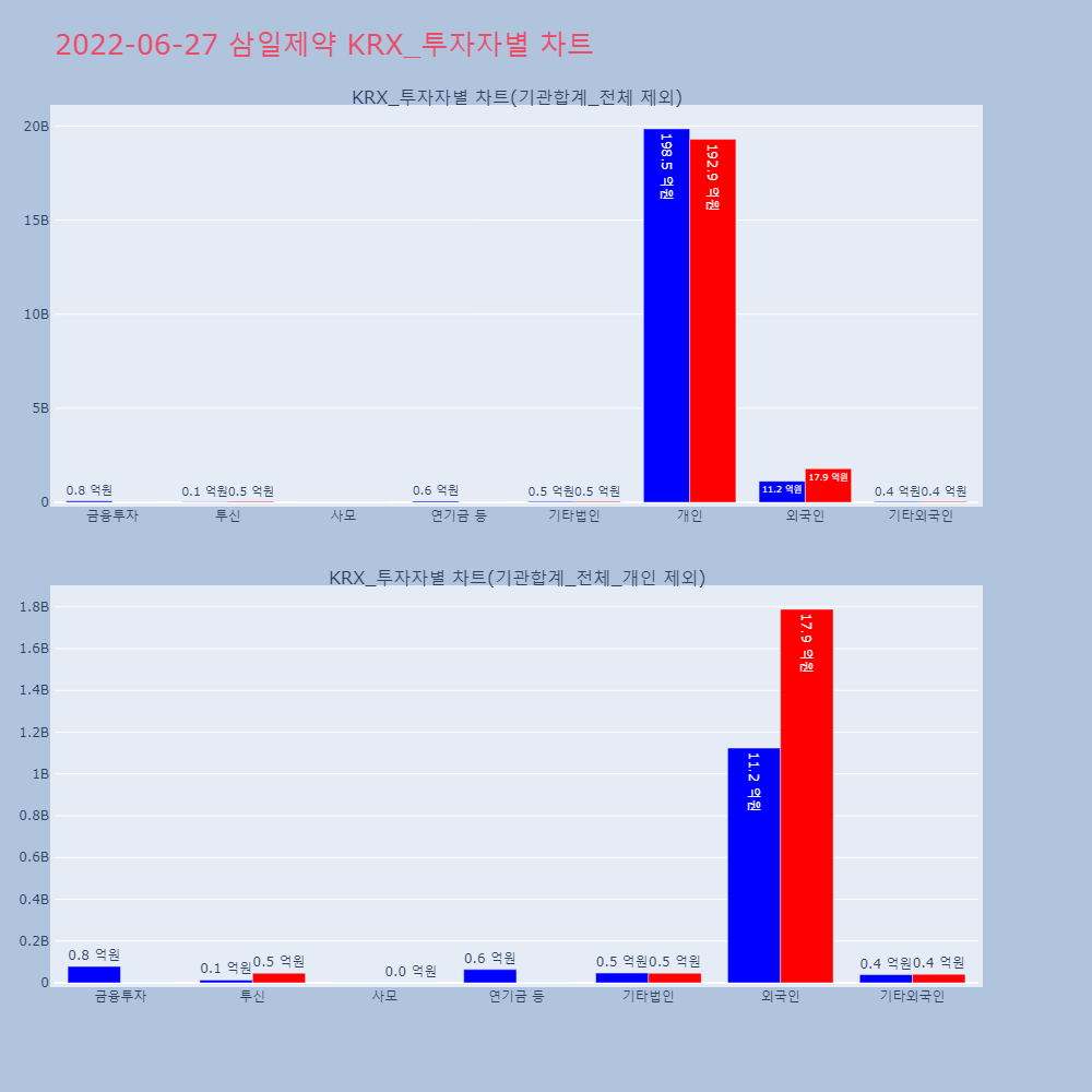 | 외국인 | 261,218 | 191,966 | -69,252 | 2,804,567,820 | 2,025,233,460 | -779,334,360 |